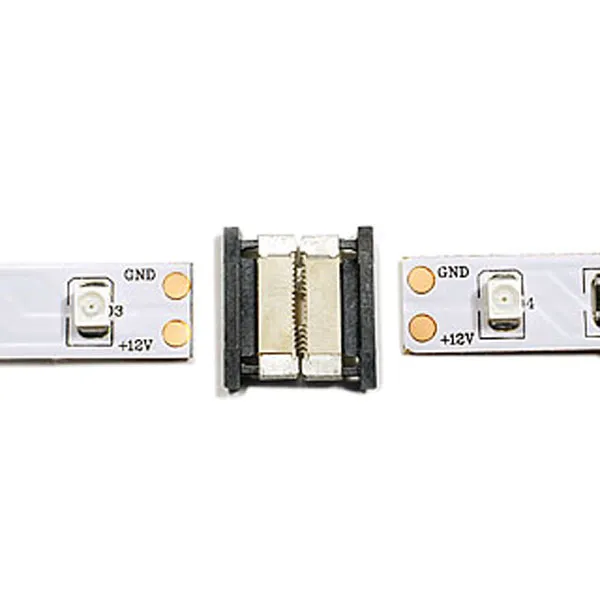 2-х сторонний зажимной разъем (керамика) для соединения 2-х отрезков светодиодных одноцветных лент шириной 8мм. Без провода. Максимальный допустимый ток 4А. Не рекомендуется соединять длинные отрезки лент!