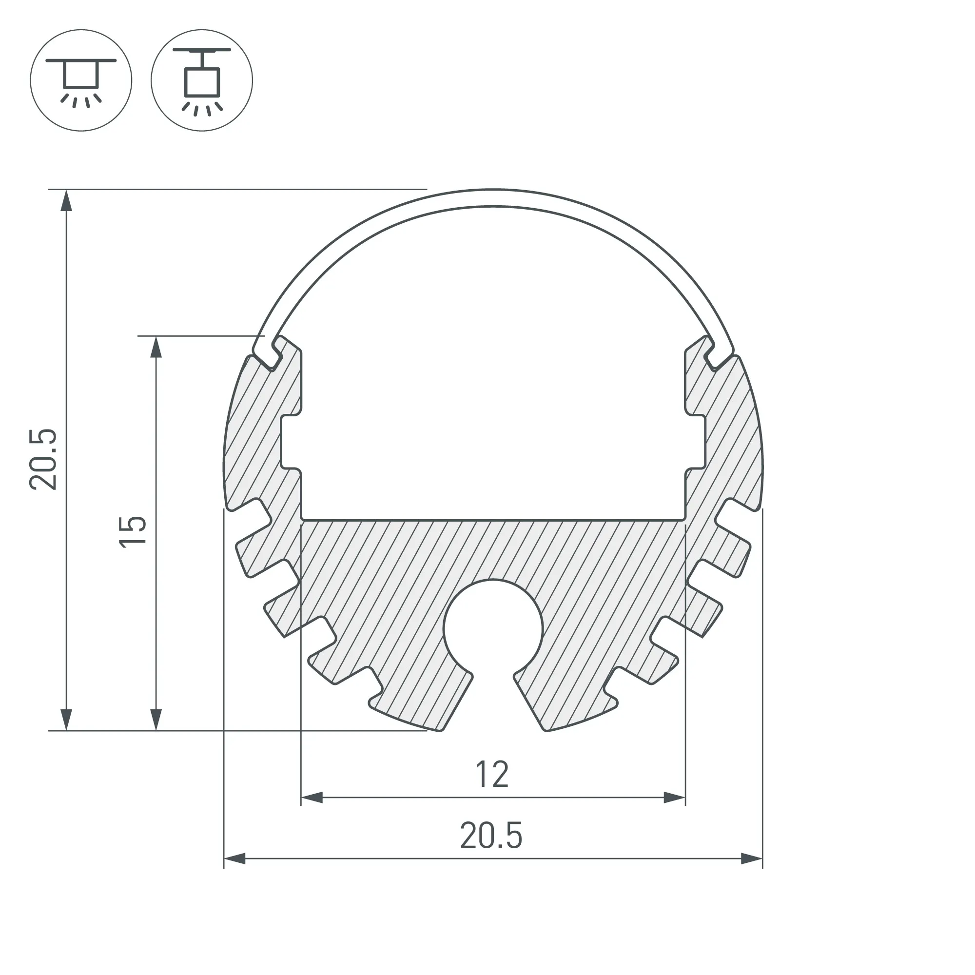 Алюминиевый анодированный круглый профиль для светодиодных лент и линеек. Габаритные размеры (L×W×H): 2000x20,5x20,5 мм. Ширина площадки для ленты 12 мм. Экраны, заглушки и другие аксессуары приобретаются отдельно. Цена за 1 метр.
