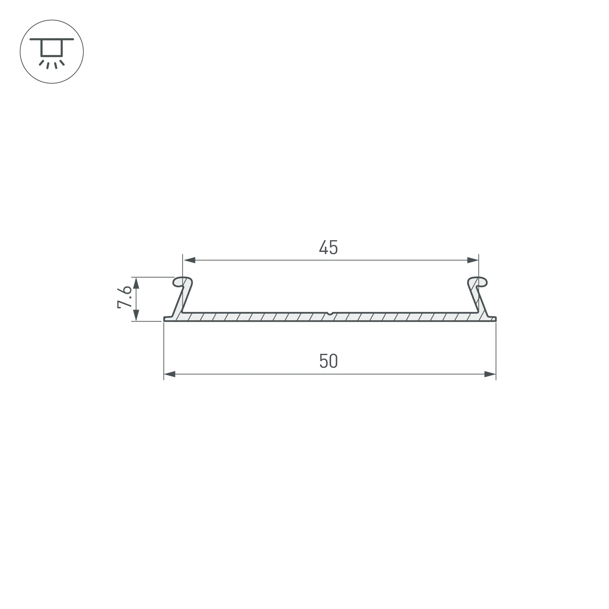 Алюминиевый анодированный профиль-верх (верхняя часть) для профиля TOP-LINIA53, устанавливается вместо экрана. Непрозрачный. Габаритные размеры (L×W×H): 2000x50x7,6 мм. Цена за 1 метр.