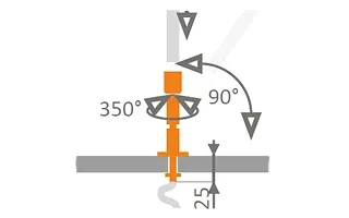 Шарнирный держатель для профиля PEN, вращение вокруг оси 330 град. наклон до 90 град. Сквозная установка на ДСП, фанеру до 25мм. В комплекте держатель, заглушка. Габариты: основание D40xH4мм, высота с держателем 109мм.