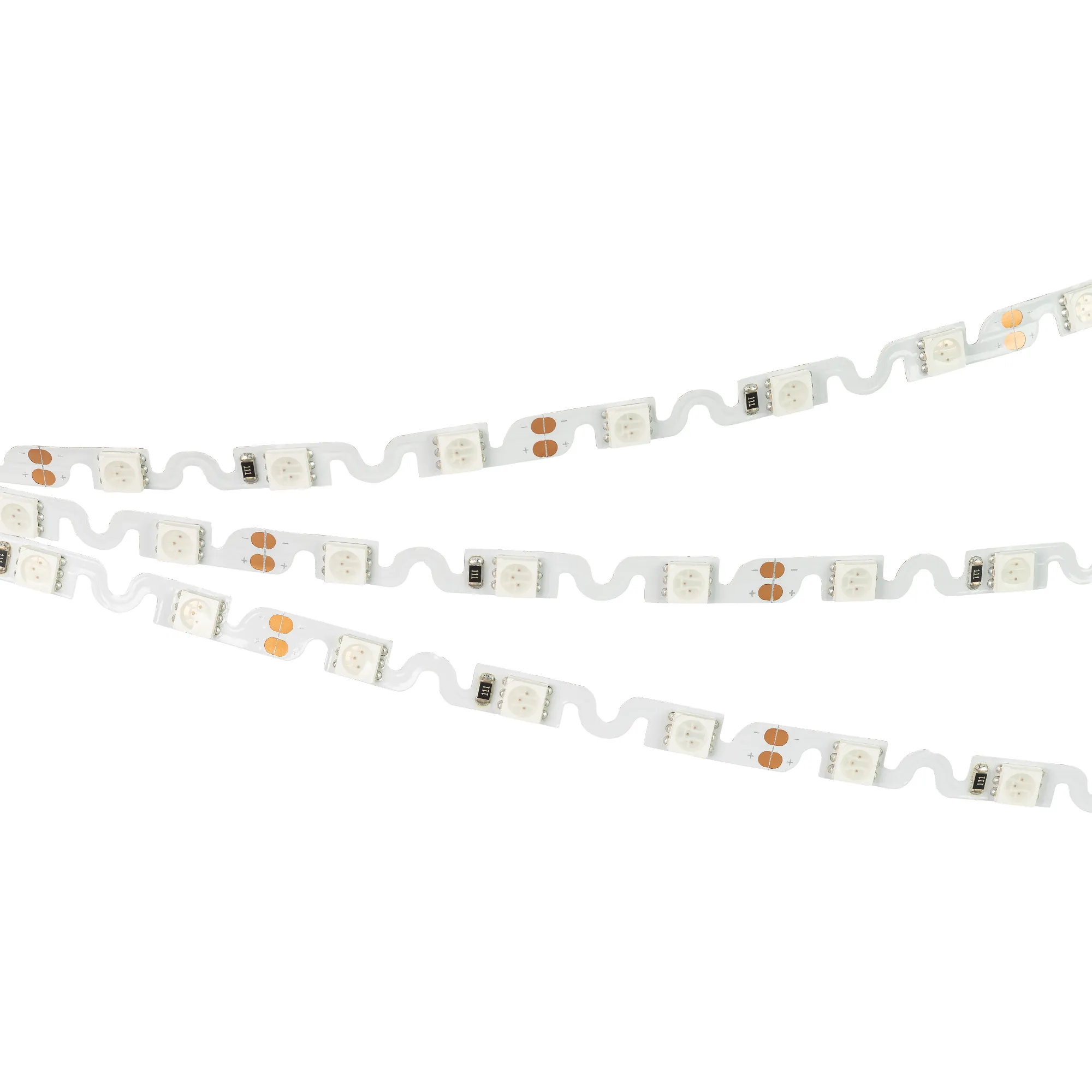 Гибкая лента с фигурной платой в форме волны, легко изгибается на плоскости. Светодиоды smd 5060, 48шт/м (240шт на 5м), белая плата 6.1мм, скотч 3М. Цвет СИНИЙ. Питание 12V, мощность 11.5 Вт/м (57.5 Вт на 5м), угол 120°. Размеры 5000х6.1х2.2мм. Мин.отрезок 62.5мм, 3 светодиода. Цена за 1м.