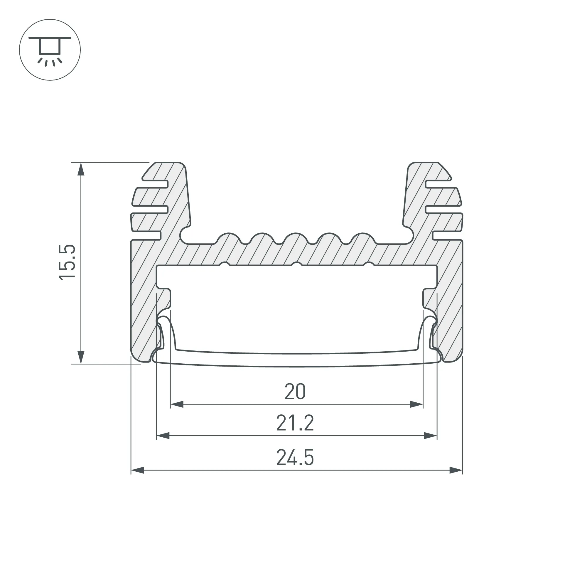 Алюминиевый анодированный накладной профиль для светодиодных лент и линеек. Габаритные размеры (L×W×H): 2000x24,5x15,5 мм. Ширина площадки для ленты 20 мм. Экраны, заглушки и другие аксессуары приобретаются отдельно. Цена за 1 метр.