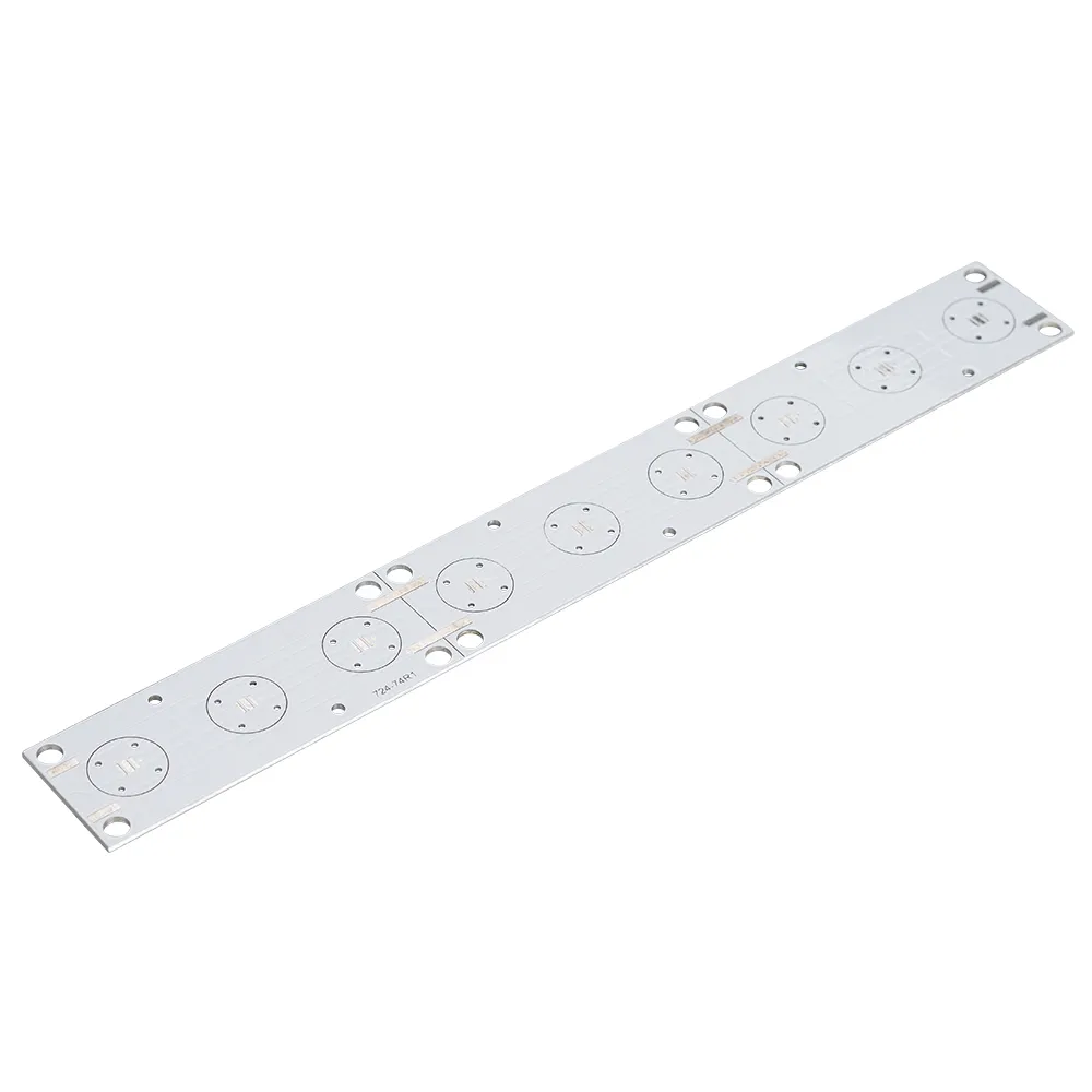 Алюминиевая плата. Размеры 240×30 мм (разделяется на три платы 80×30 мм). Цвет белый. Для 9-ти (3 группы последовательно по 3) одноцветных светодиодов типа Сree XPC/XPE/XPG. Под линзы 3LB30D, 3LB50D.