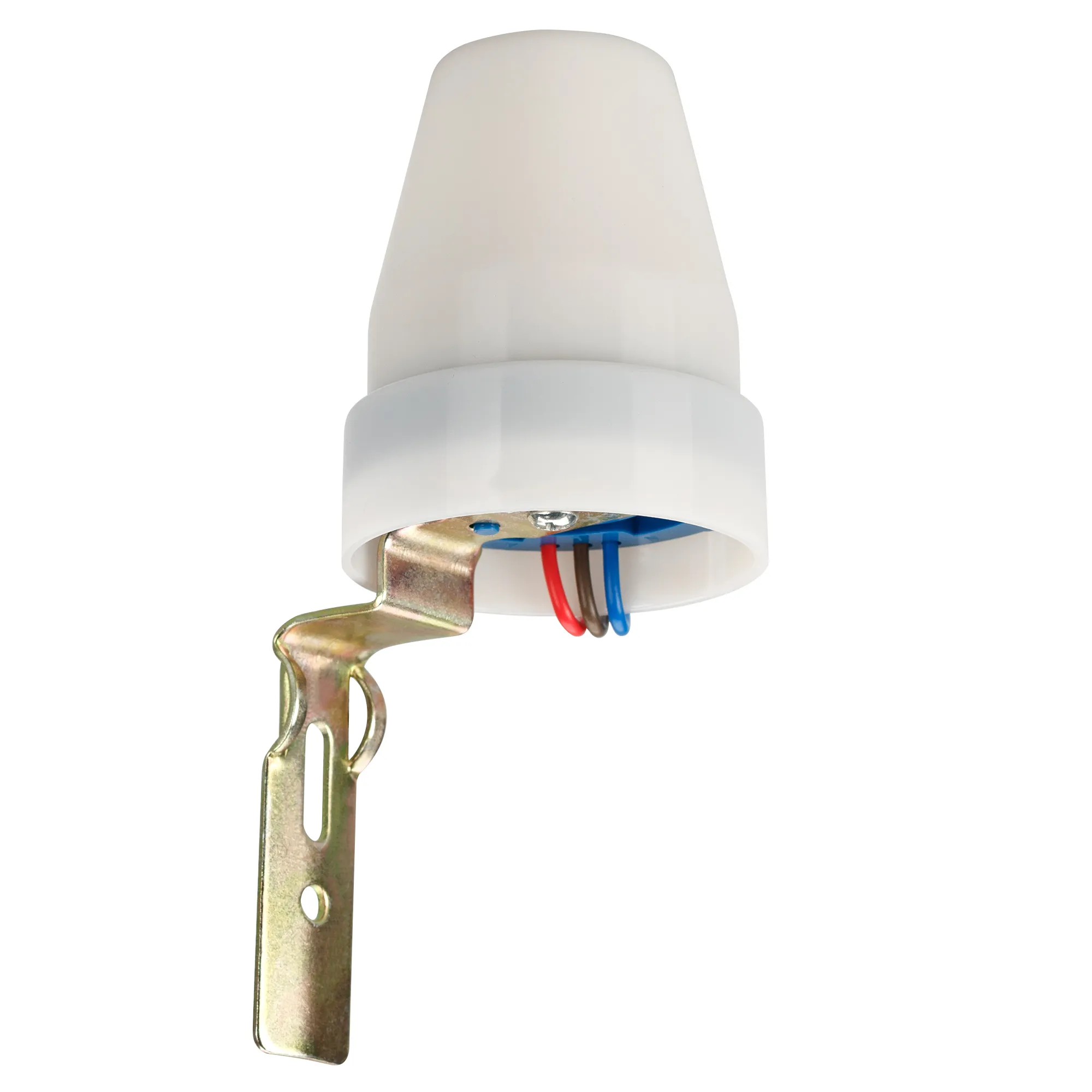 Реле включения освещения в зависимости от уровня внешней освещенности. Порог срабатывания 10-100 люкс (регулируется), мощность 2200 вт, ток 10А, размеры D63xH76,5 мм (без крепления), вес 140 г 220-240VAC