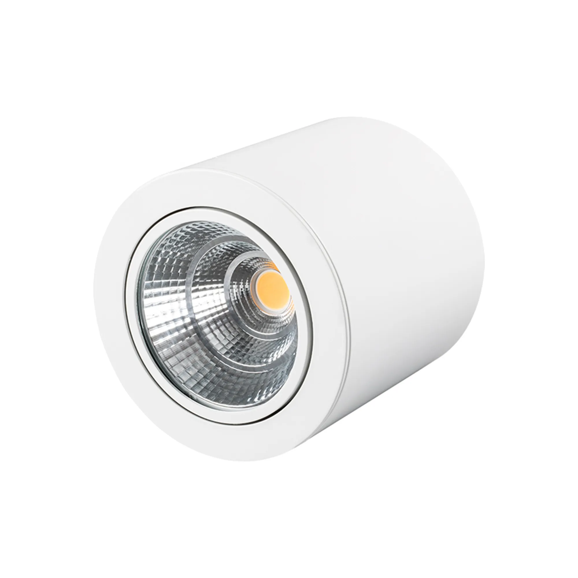 Накладной светильник 30Вт, белый корпус цилиндр. Цвет ДНЕВНОЙ БЕЛЫЙ 4000K, св.поток 2400-2700лм, CRI(Ra)>80, наклоняемая ось, угол 24°. Размер Ф140x140 мм. Питание AC 180-240V, 30Вт, встроенный драйвер (DC 700mA 26-43V).