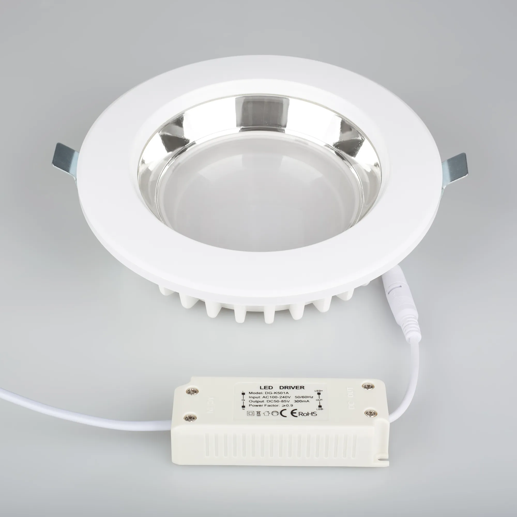 Даунлайт, угол 90° / 25Вт/ ДНЕВНОЙ БЕЛЫЙ 4000K / LED 2835 48шт / 2320 лм / CRI>80. Белый корпус, алюминий, опрессованный в термопласт. Питание AC 100-240V (драйвер в к-те 280-300mA 80V). Габариты: (d)190х(h)75 мм, врезное отверстие 165 мм.