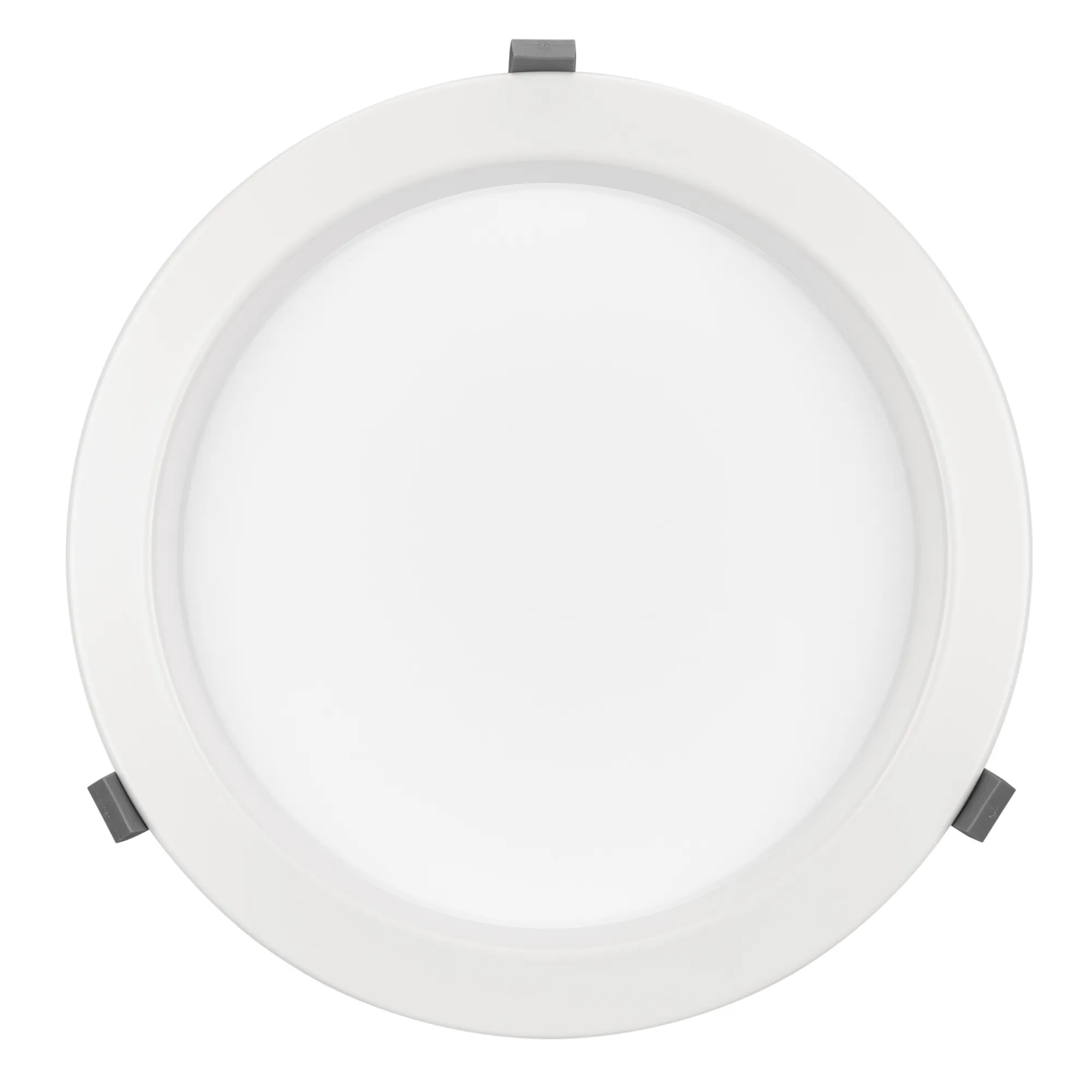 Встраиваемый светильник "Даунлайт" 40Вт. Цвет свечения БЕЛЫЙ 6000К. Световой поток 3880лм, угол 90°, CRI>80. Белый корпус. Питание AC220-240V. Габариты: Ø280х94мм, врезное отверстие Ø240-255мм. Драйвер в комплекте (23-38.5V, 1050mA).
