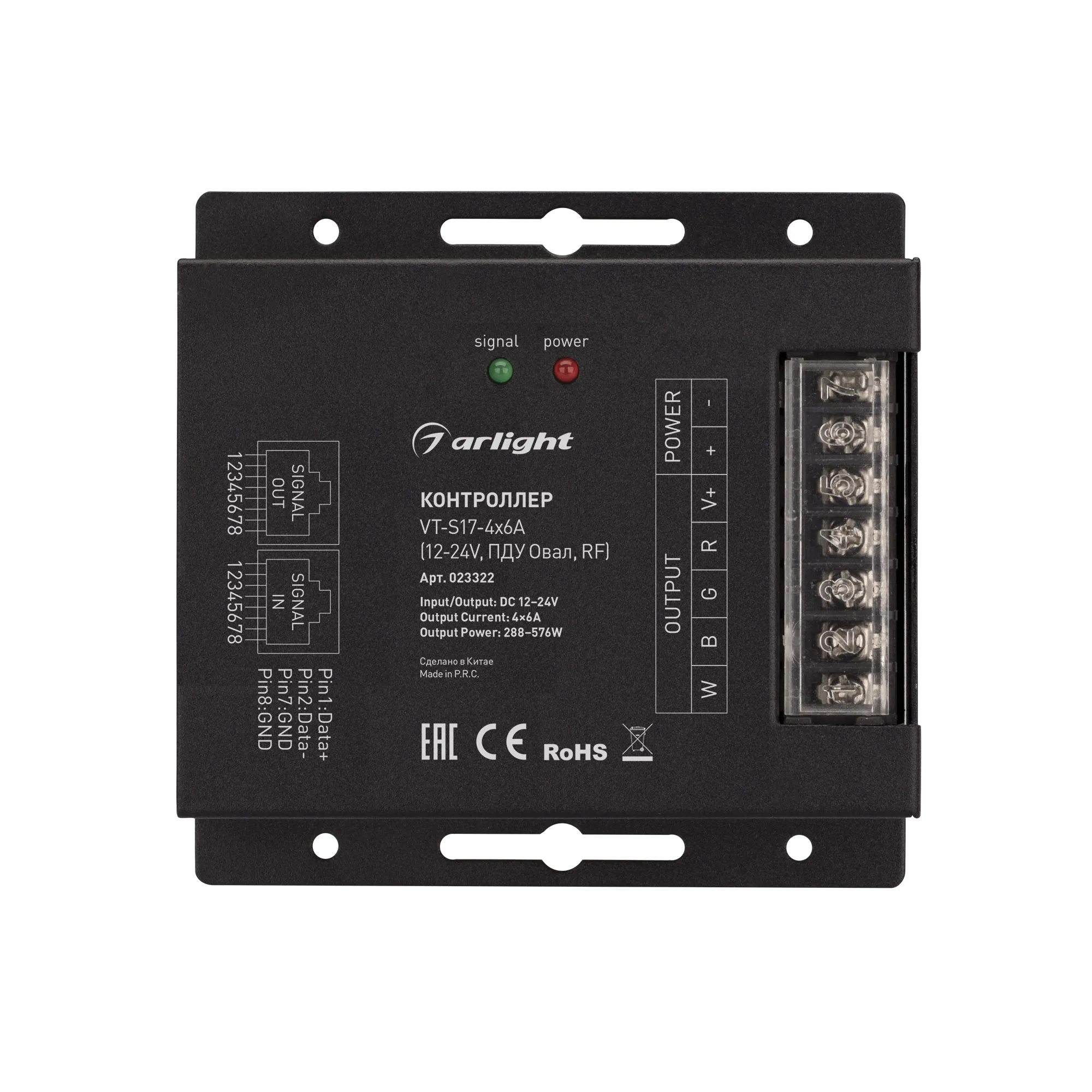 В магазине Мельковский Свет Вы можете купить "Контроллер VT-S17-4x6A (12-24V, ПДУ Овал, RF) (Arlight, IP20 Металл, 3 года)"