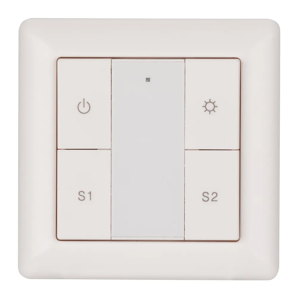 Встраиваемая кнопочная белая пластиковая панель для работы по протоколу DALI. Включение/выключение, диммирование, вызов и сохранение 2-х сцен в 1 группе. Установка номера группы и номера первой сцены выполняется переключателями на корпусе. Питание от шины DALI (4 мА). Стандартная рамка входит в комплект поставки.