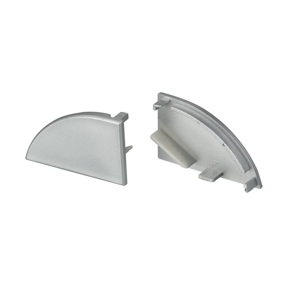 Заглушка ЛЕВАЯ светонепроницаемая для профиля KLUS-P45.30 под полукруглый экран KLUS-P45-Round. Материал - металлизированный пластик с полным гашением света. Цвет - серебристый.