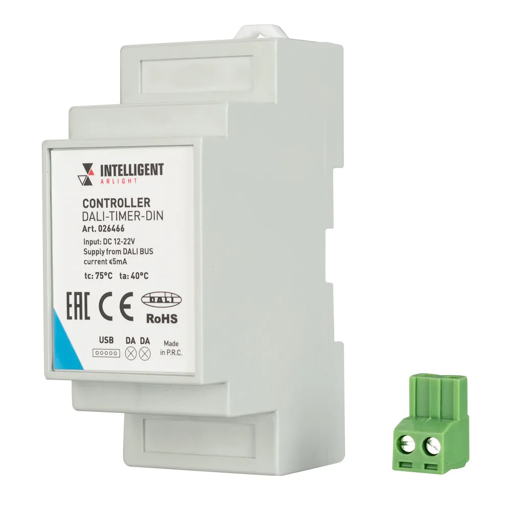 Логический автономный контроллер-таймер DALI для управления по времени сценами, устройствами, группами. 16 временнЫх точек, в каждой точке до 8 объектов управления. 24/7 часы реального времени с резервной батареей. Питание от шины DALI . Настройка с компьютера через USB. Монтаж на DIN-рейку. Минимальная временная задержка между точками перехода - 1 минута. Идеален для создания суточного таймера, управления MIX источниками света для реализации HCL (циркадного освещения).