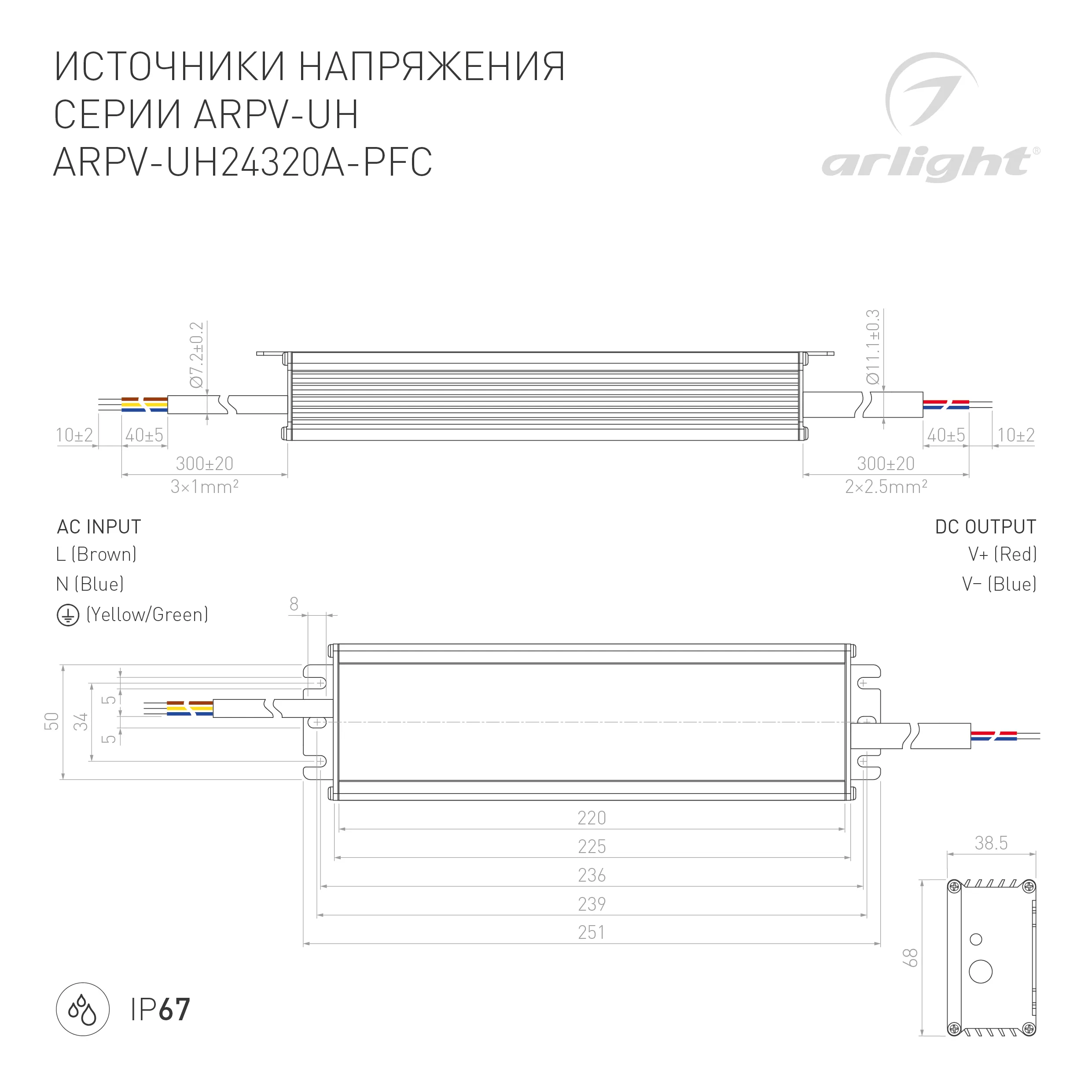 В магазине Мельковский Свет Вы можете купить "Блок питания ARPV-UH24320A-PFC (24V, 13.3A, 320W) (Arlight, IP67 Металл, 7 лет)"