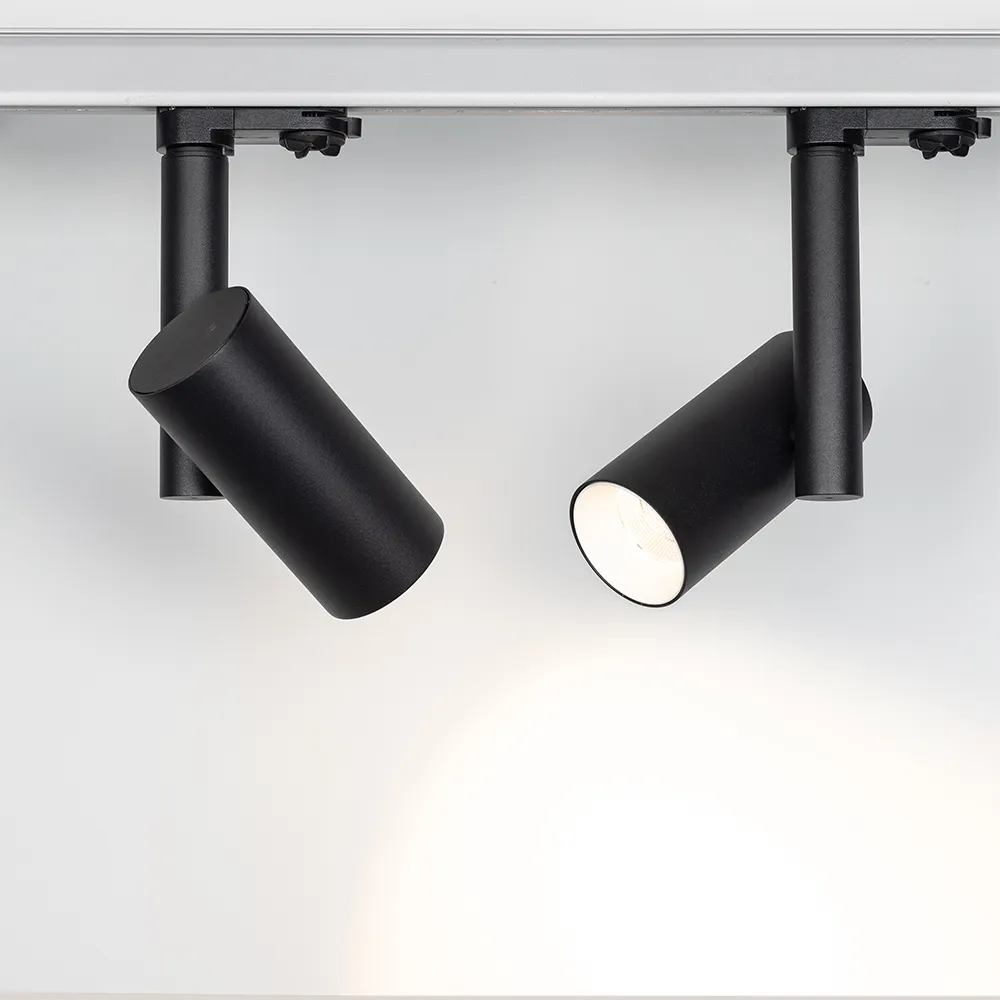 Трековый светильник 8Вт, черный круглый корпус, белая вставка, металл.