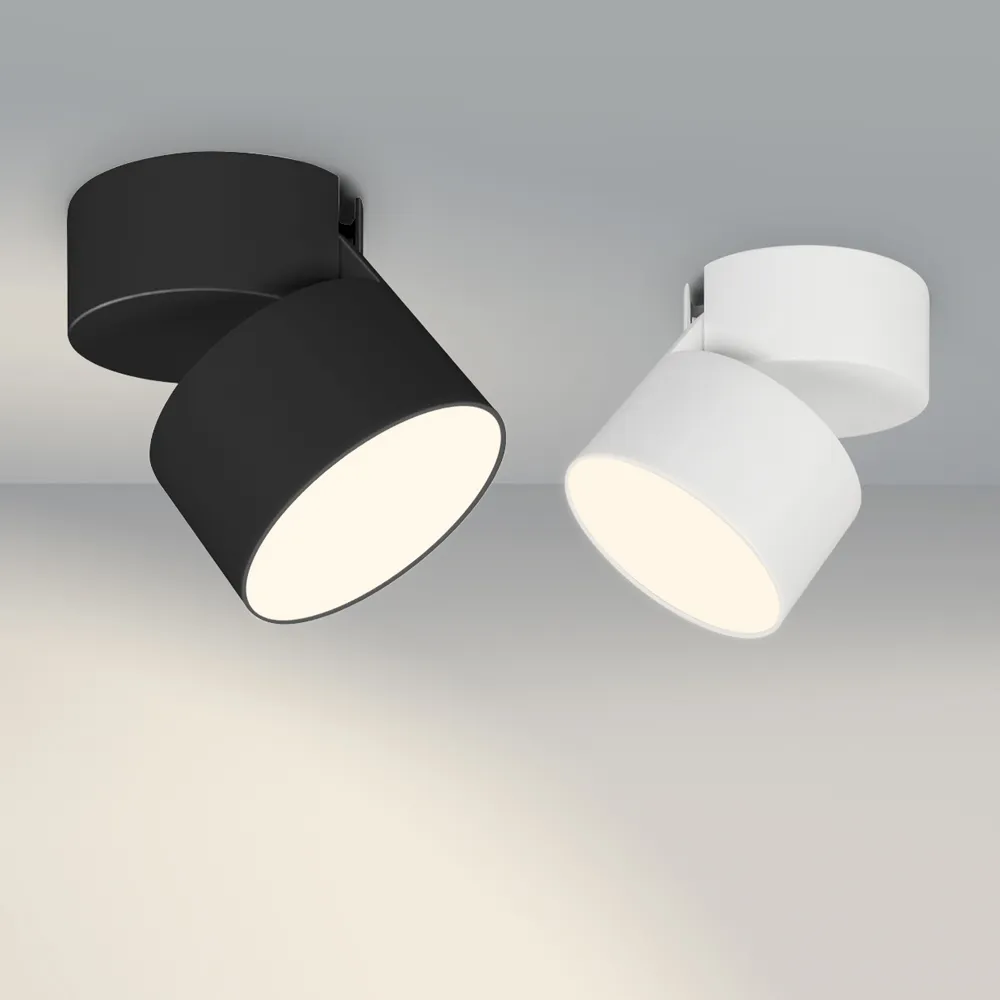 Накладной откидной светильник 25Вт, черный круглый корпус. Цвет ДНЕВНОЙ 4000K, св.поток 1750лм, CRI(Ra)>90, угол 110°. Размер светильника Ф110x75мм, размер чаши Ф110x49мм. Питание AC220-240V, 25Вт, драйвер встроенный (600mA, 27-40V). Поворачивается вокруг своей оси на 350° и отклоняется на 90°. Пульсация <0,3%