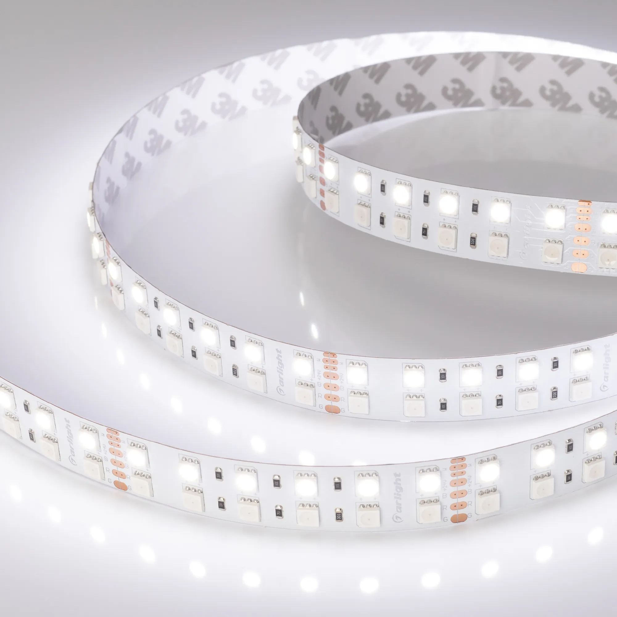 В магазине Мельковский Свет Вы можете купить "Лента светодиодная RT 2-5000 24V RGB-White 2x2 (5060, 720 LED, LUX) (Arlight, 32 Вт/м, IP20)"