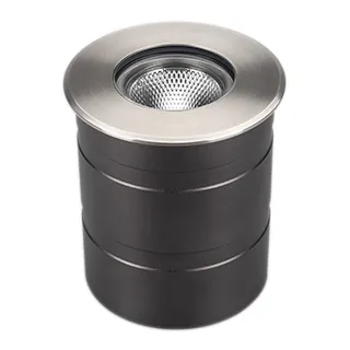 Встраиваемый светодиодный светильник для грунта и пола. Мощность 15Вт, световой поток 1340лм, цвет ТЕПЛЫЙ 3000К. CRI(Ra)>80, угол 20°. Круглый влагозащищенный корпус IP67, нержавеющая сталь. Экран закалённое стекло. Питание AC230V, 15Вт. Размер DxH Ø110x85мм. Установка в отверстие DxH Ø100x120мм.