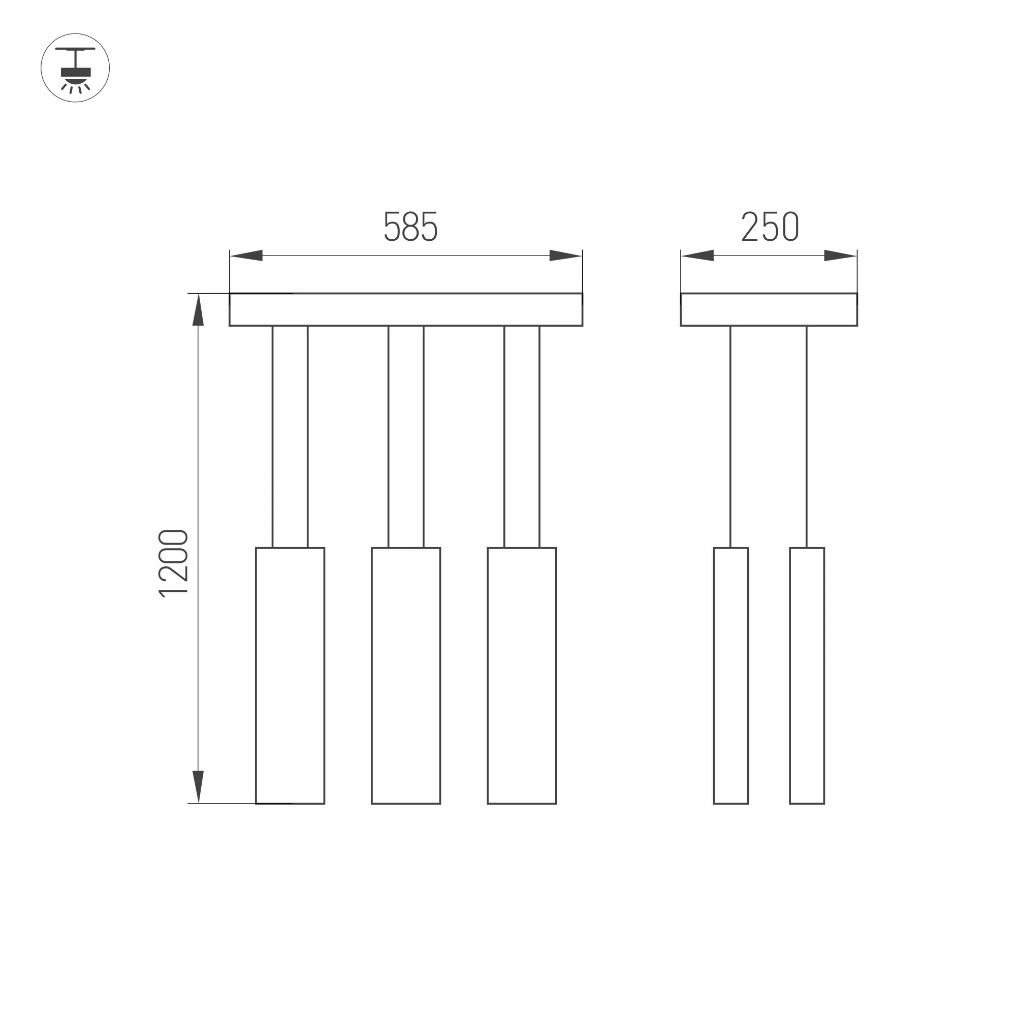 Подвесной светильник 6х6Вт, черный матовый корпус, материал алюминий. Цвет ТЕПЛЫЙ БЕЛЫЙ 3000K, св.поток 2400лм, CRI(Ra)>80, угол 34°. Размер 585x250x1200мм. Питание AC220-240, драйвер в комплекте (40-67V, 600mA), 36Вт.