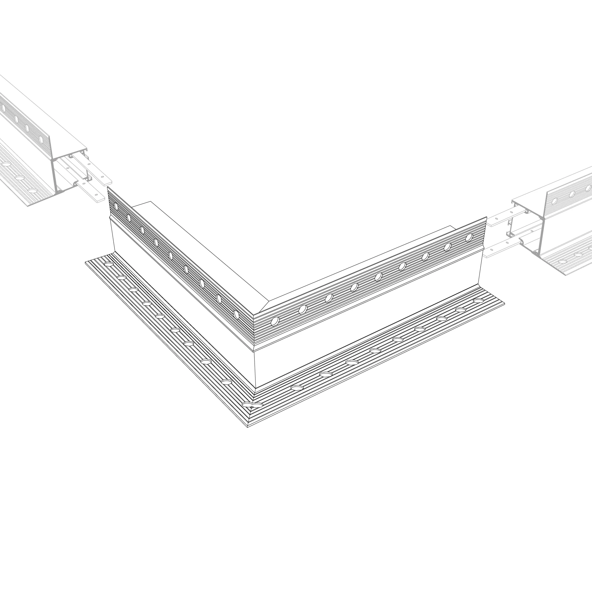 Угол в сборе, для профиля SL-LINIA32-FANTOM-EDGE. Свечение наружу. В комплекте угол с экраном, соединители, винты, шестигранный ключ.