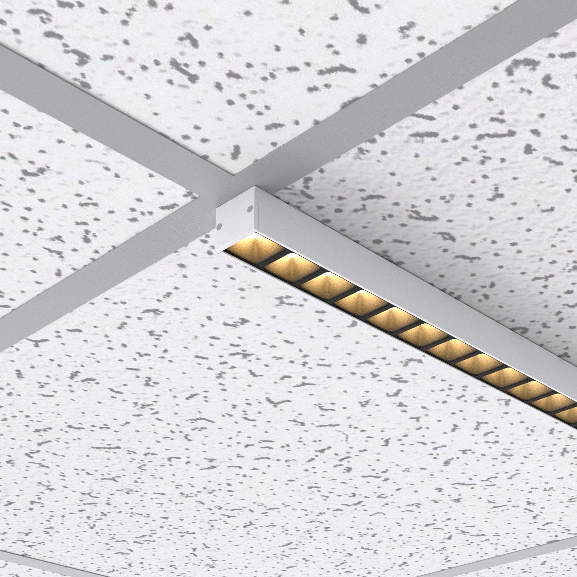 Светодиодный светильник для направляющих потолка Армстронг шириной 15 и 24 мм. Мощность 14 Вт, св. поток 1620 лм, 115 лм/Вт, дневной 4000K, CRI>80, угол 80°, напряжение питания 48 В. Белый квадратный корпус из алюминия, экран PC, степень защиты IP40. Размер: длина 600 мм, ширина 25 мм, высота 28 мм. Монтаж накладной. Драйвер поставляется отдельно.