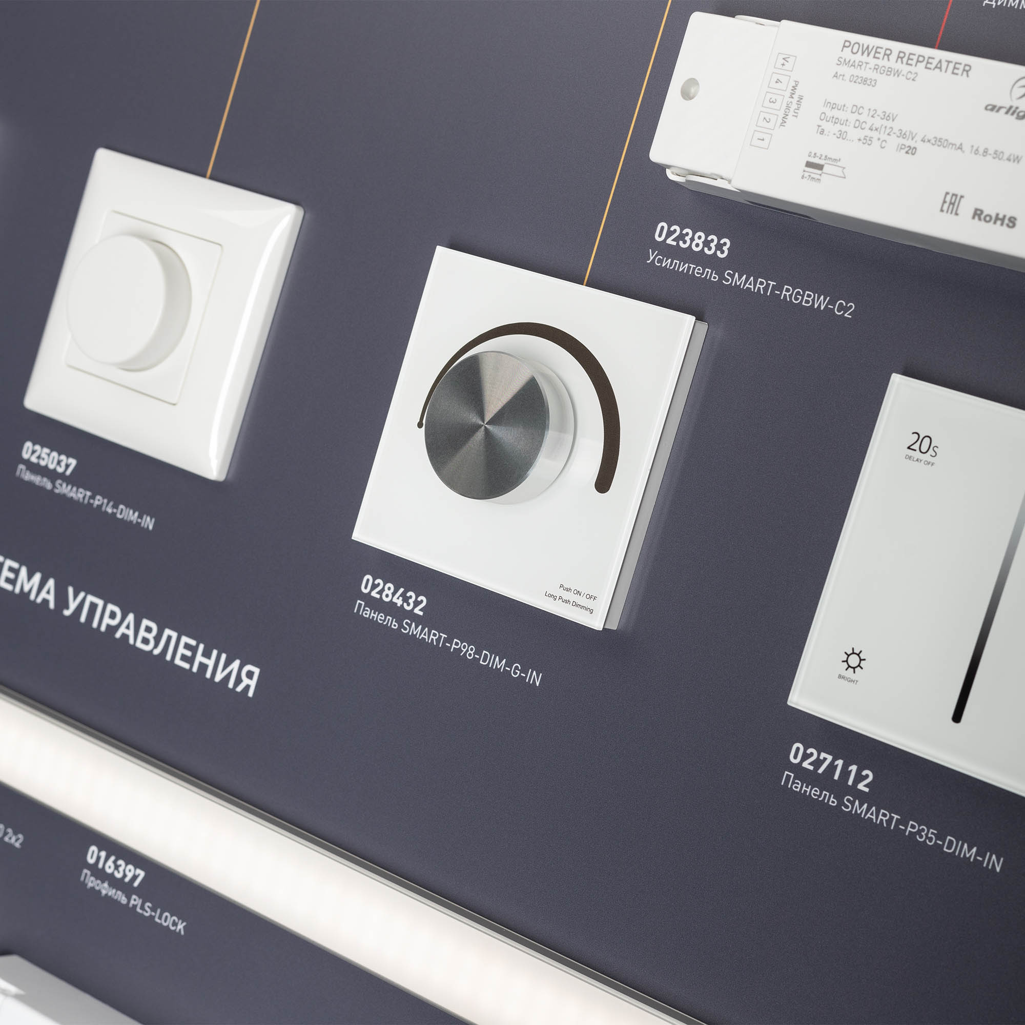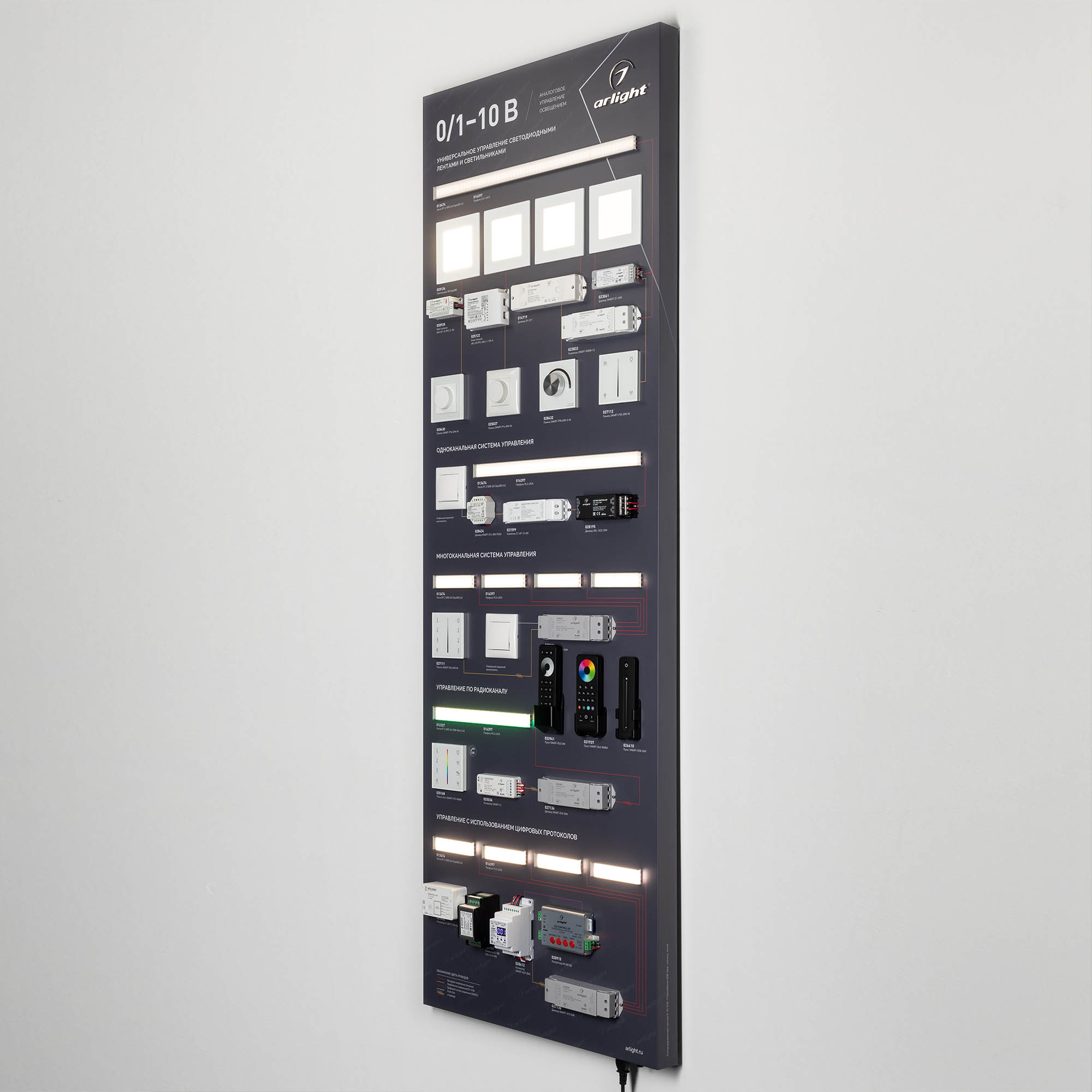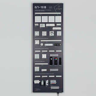 Наши специалисты знают все о продукции Arlight и с радостью помогут Вам выбрать комплектующие к товару "Стенд Управление светом 0-10-Е36-1760x600mm (DB 3мм, пленка, лого) (Arlight, -)", или другие товары из раздела