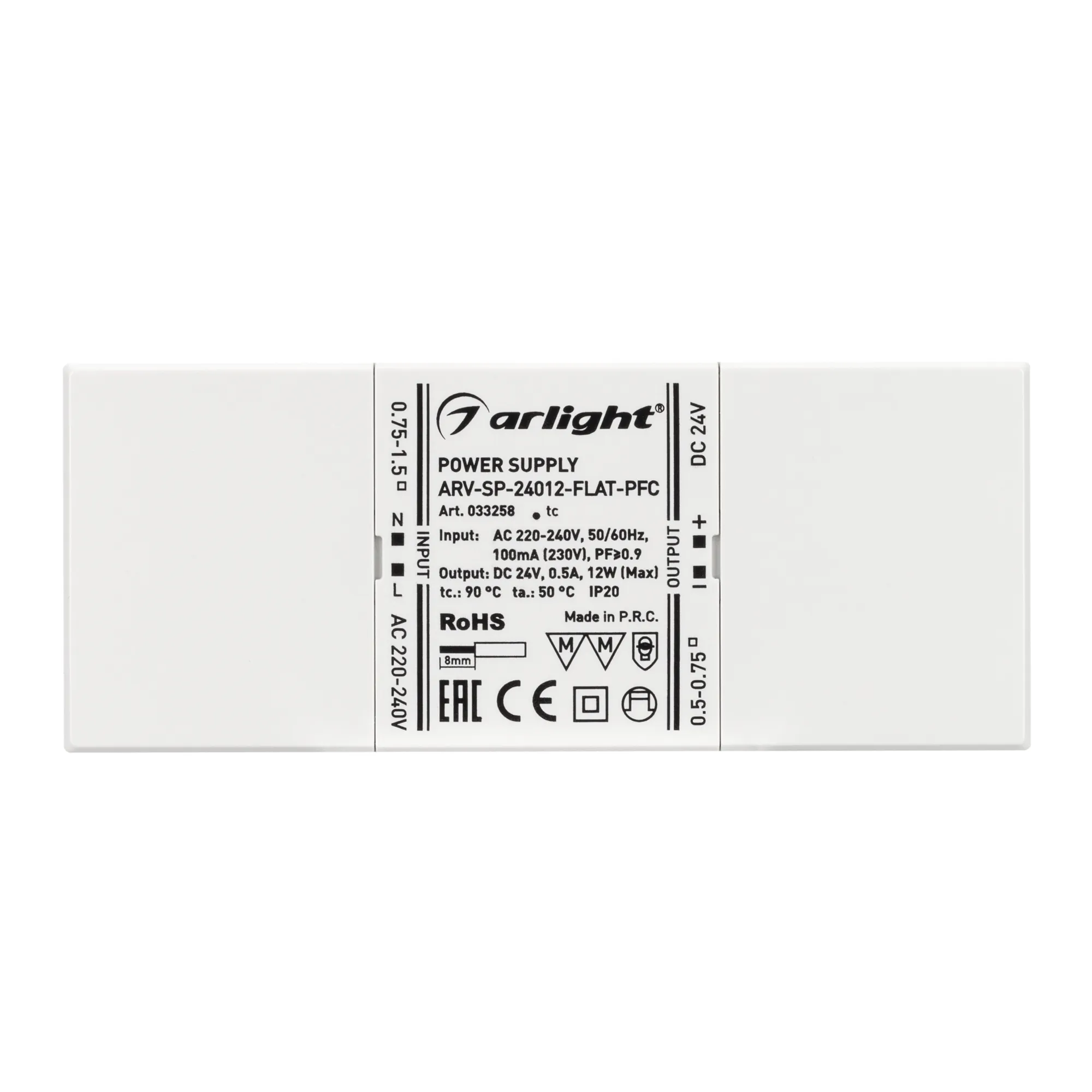 Блок питания ARV-SP-24012-FLAT-PFC (24V, 0.5A, 12W) (Arlight, IP20 Пластик, 5 лет)
