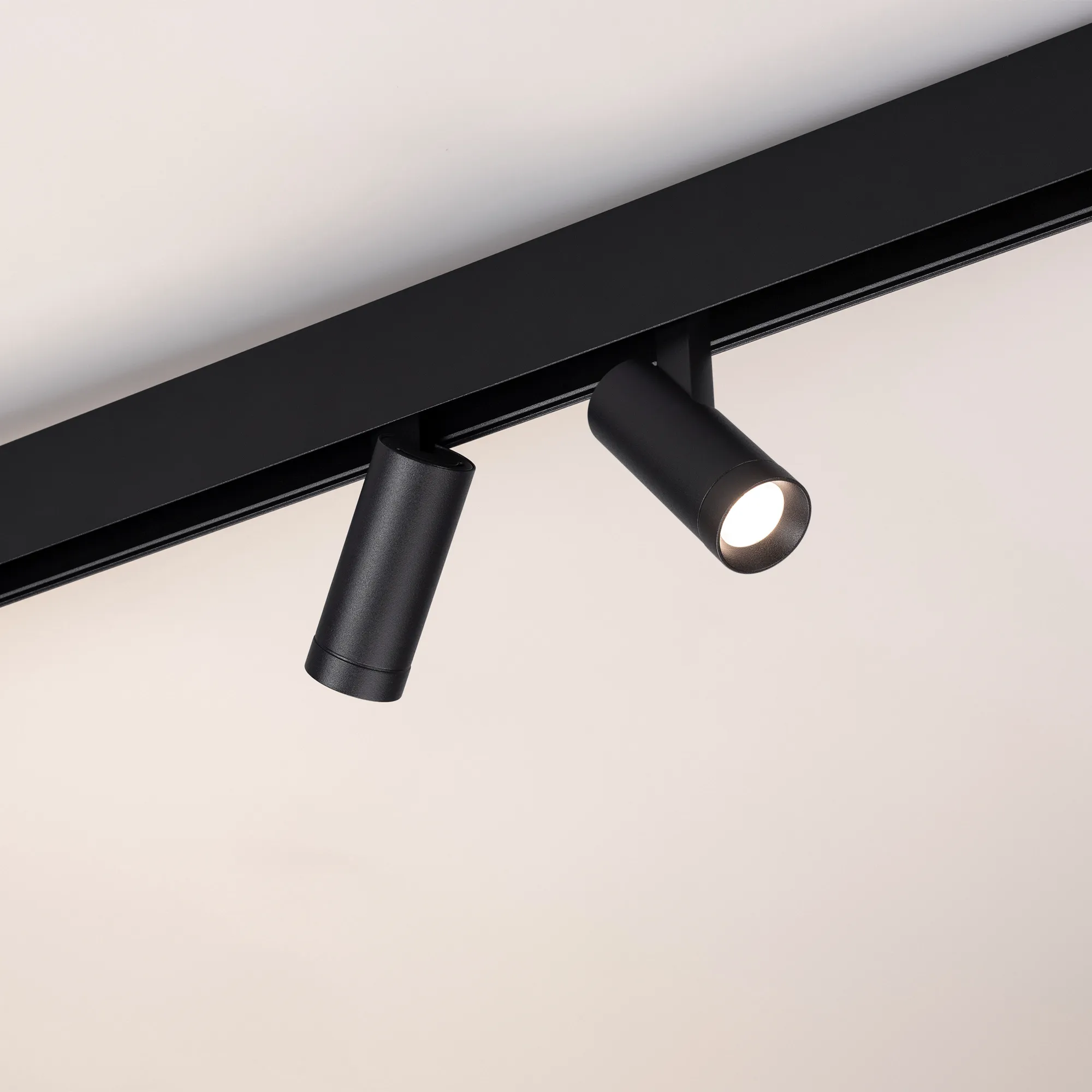 Светильник для магнитных треков MAG-ORIENT шириной 26 мм с управлением DALI. Мощность 6 Вт, св. поток 555 лм, 92 лм/Вт, дневной 4000 K, CRI>90, угол 24°, напряжение питания 48 В. Черный фигурный корпус из металл, экран поликарбонат, степень защиты IP20.Размеры LxWxH 204x35x132 мм. Длина светоизлучающего модуля 85мм. Монтаж на трек MAG-ORIENT. Пульсация <1%.