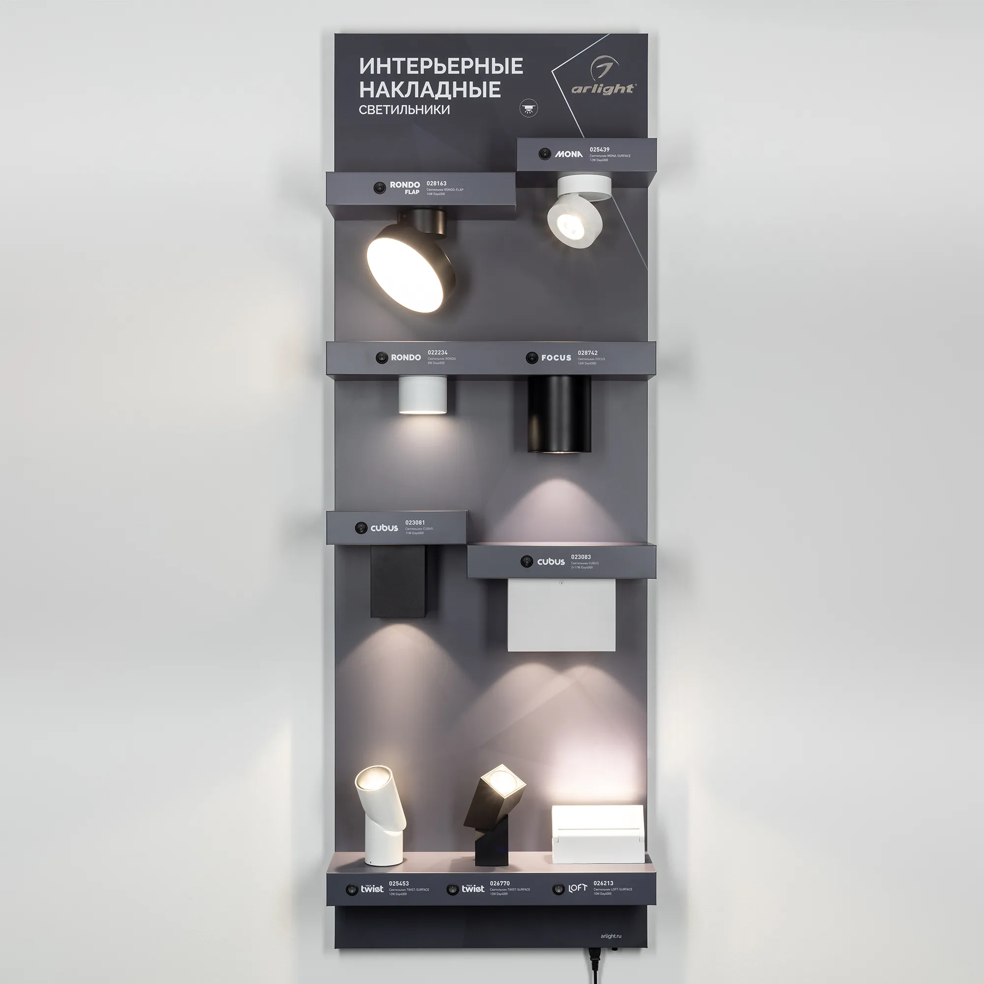 В магазине Мельковский Свет Вы можете купить "Стенд Светильники Интерьерные Накладные - E36 1760х600 (Arlight, Пластик)"
