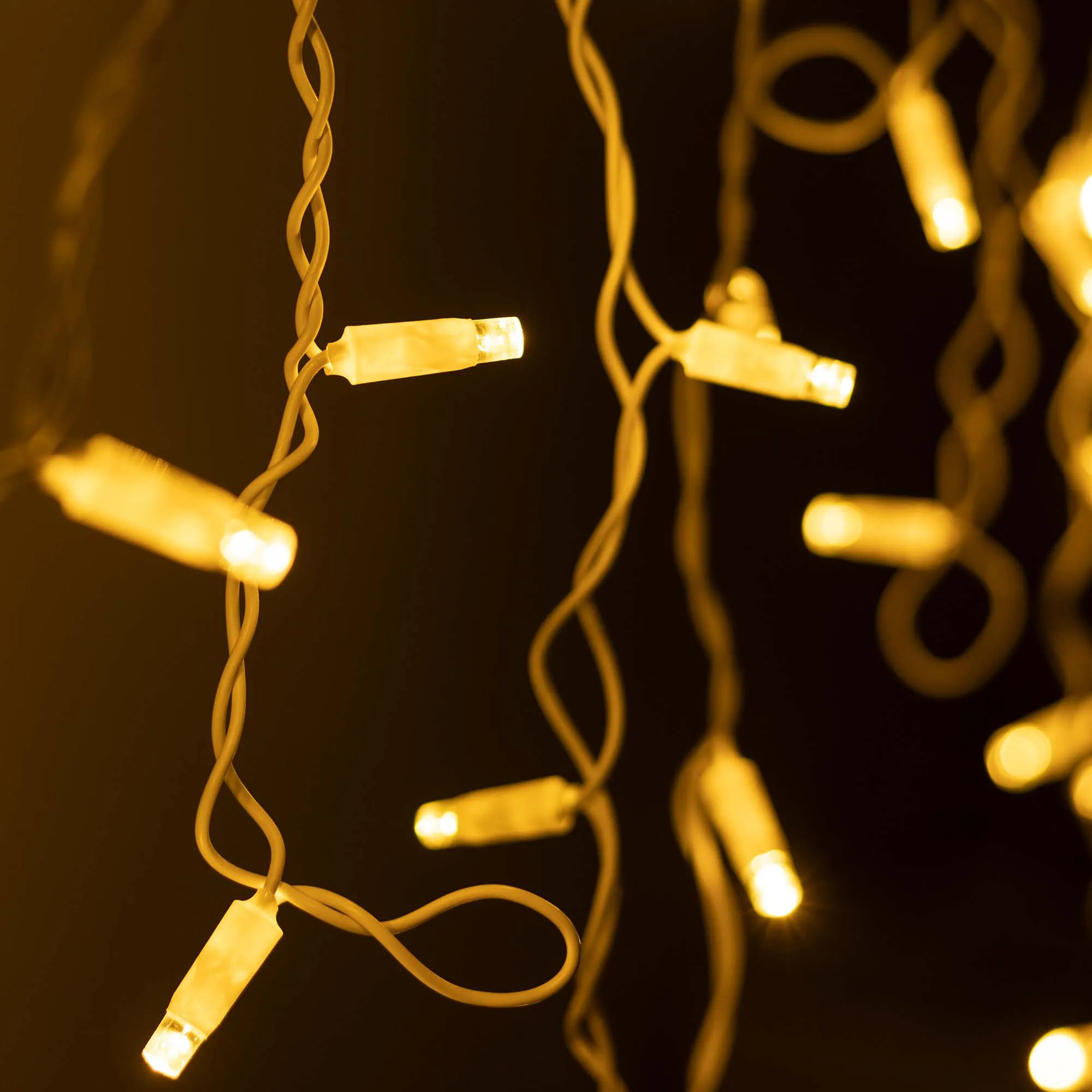 Светодиодная бахрома Classic. Размер 2400 мм (длина 2400 мм, по длине 24 нити высотой 200/600 мм). Количество светодиодов 88 шт размером 7 мм. Основной цвет свечения ТЕПЛЫЙ БЕЛЫЙ (3000 К), эффект мерцания редких точек (ТЕПЛЫЙ БЕЛЫЙ 3000К) с мягким световым рисунком (выпуклая молочно-белая линза), соотношение светодиодов: 66 теплых постоянного свечения / 12 теплых с мерцанием. Эффект частого мерцания. Провод белый, ПВХ. Питание 230 В, Мощность 6 Вт, защита IP65, применение на улице под навесом. Аксессуары для подключения приобретаются отдельно.