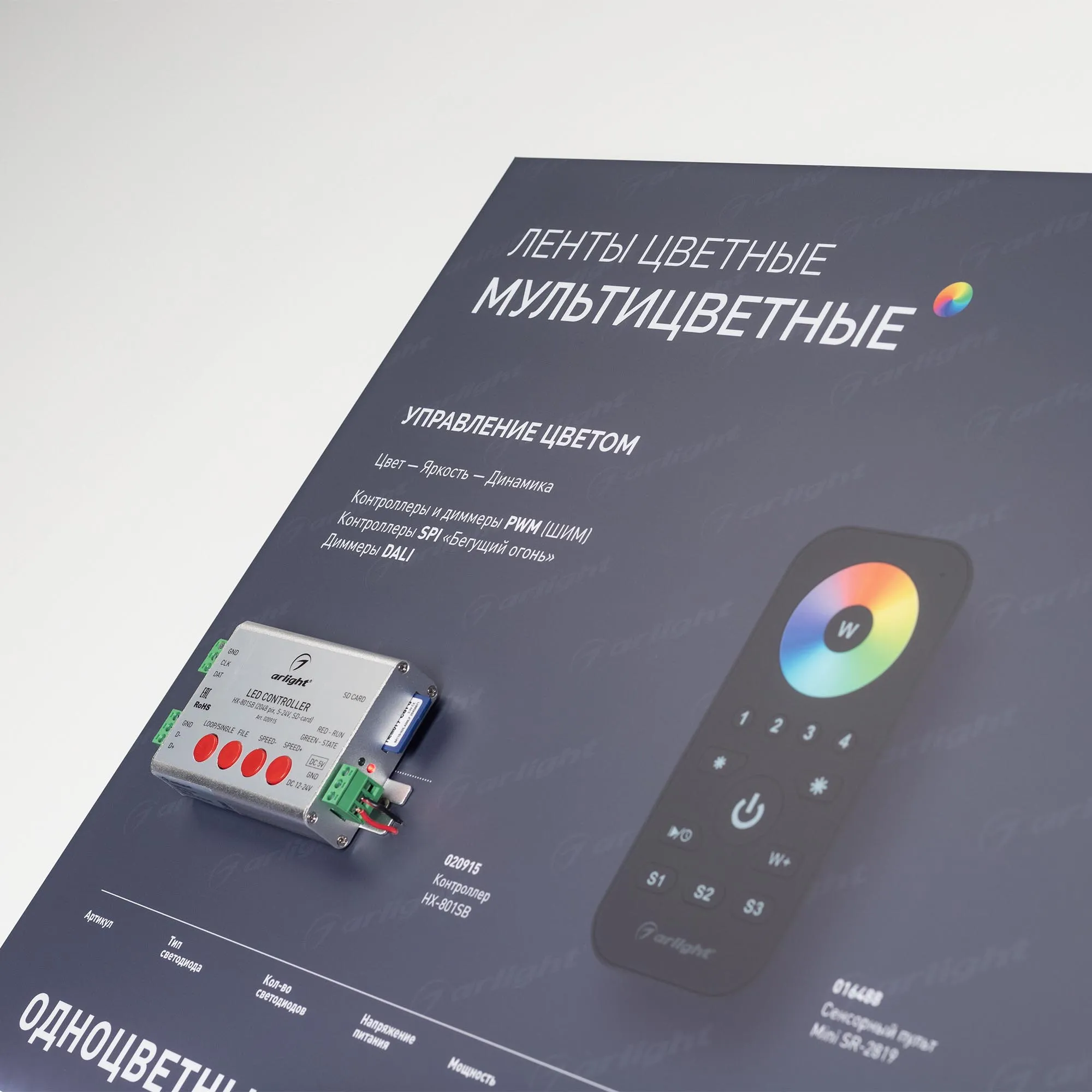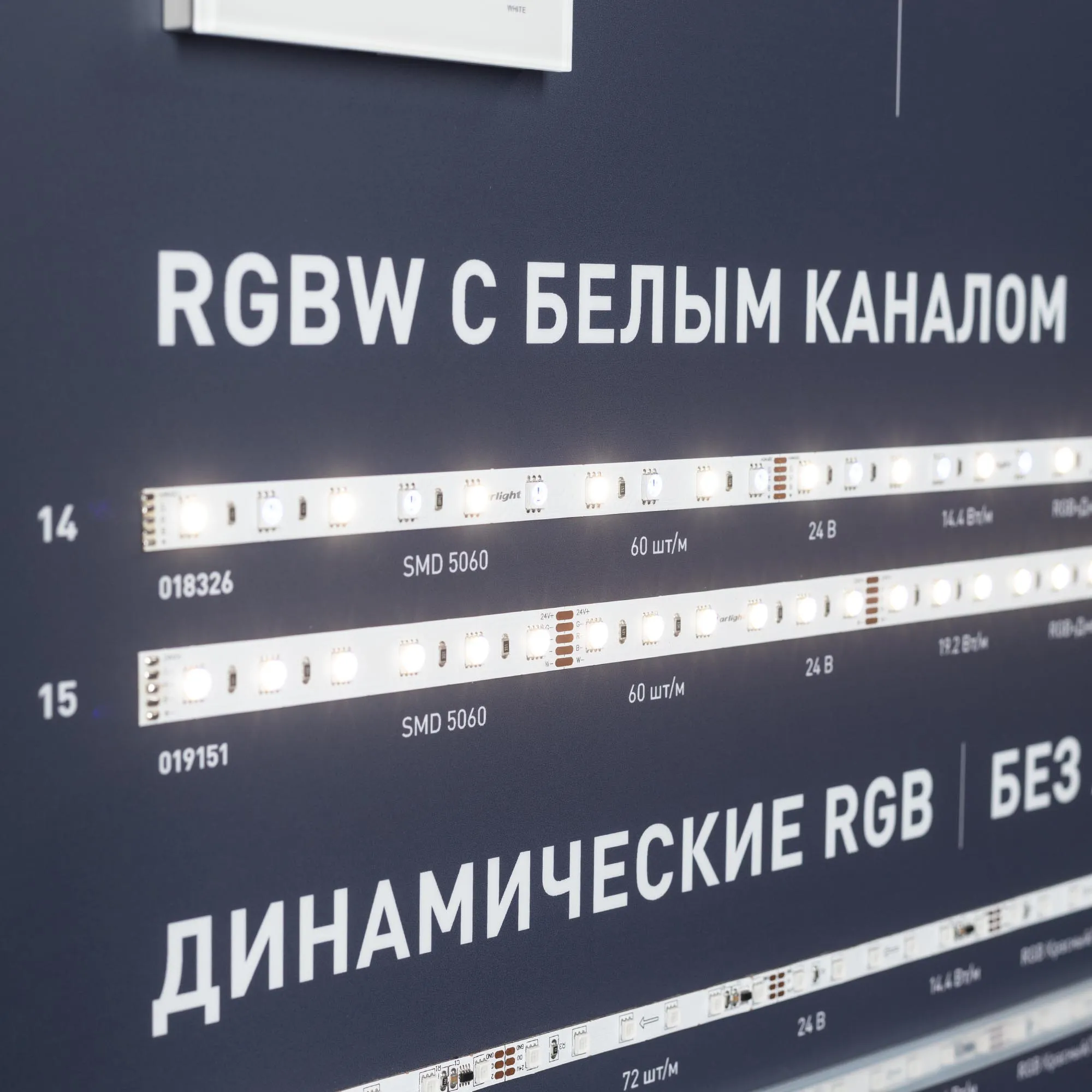 В магазине Мельковский Свет Вы можете купить "Стенд Ленты Мультицветные RGB RT-LUX-E4-1760x600mm (v.2, DB 3мм, пленка, подсветка) (Arlight, -)"