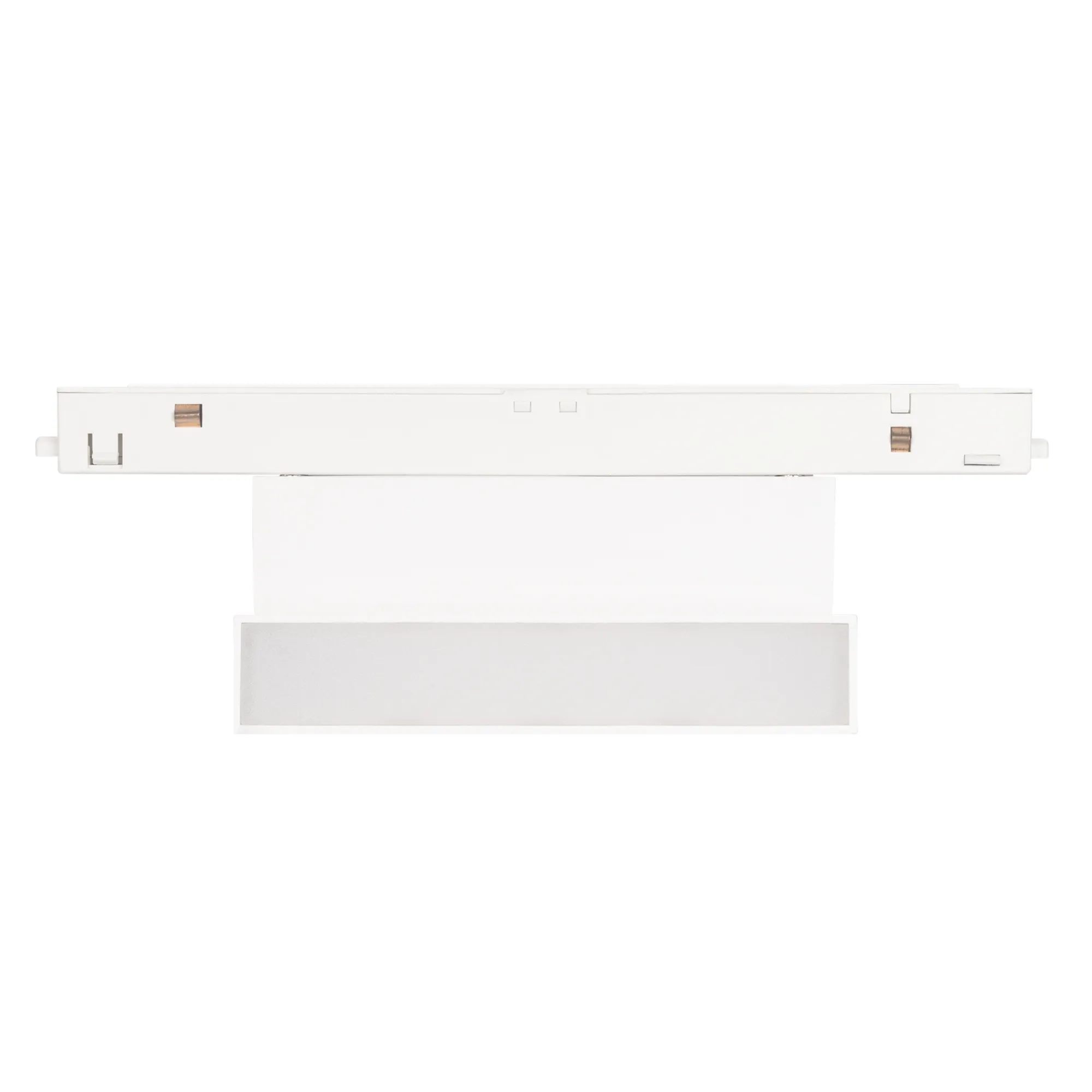Светильник для магнитных треков MAG-ORIENT шириной 26 мм. Мощность 6 Вт, св. поток 370 лм, 60 лм/Вт, теплый 3000 K, CRI>90, угол 80°, напряжение питания 48 В. Белый прямоугольный корпус из металл, экран поликарбонат, степень защиты IP20. Размер: длина 204 мм, ширина 23 мм, высота 99 мм. Монтаж на трек MAG-ORIENT, пульсация <1%.
