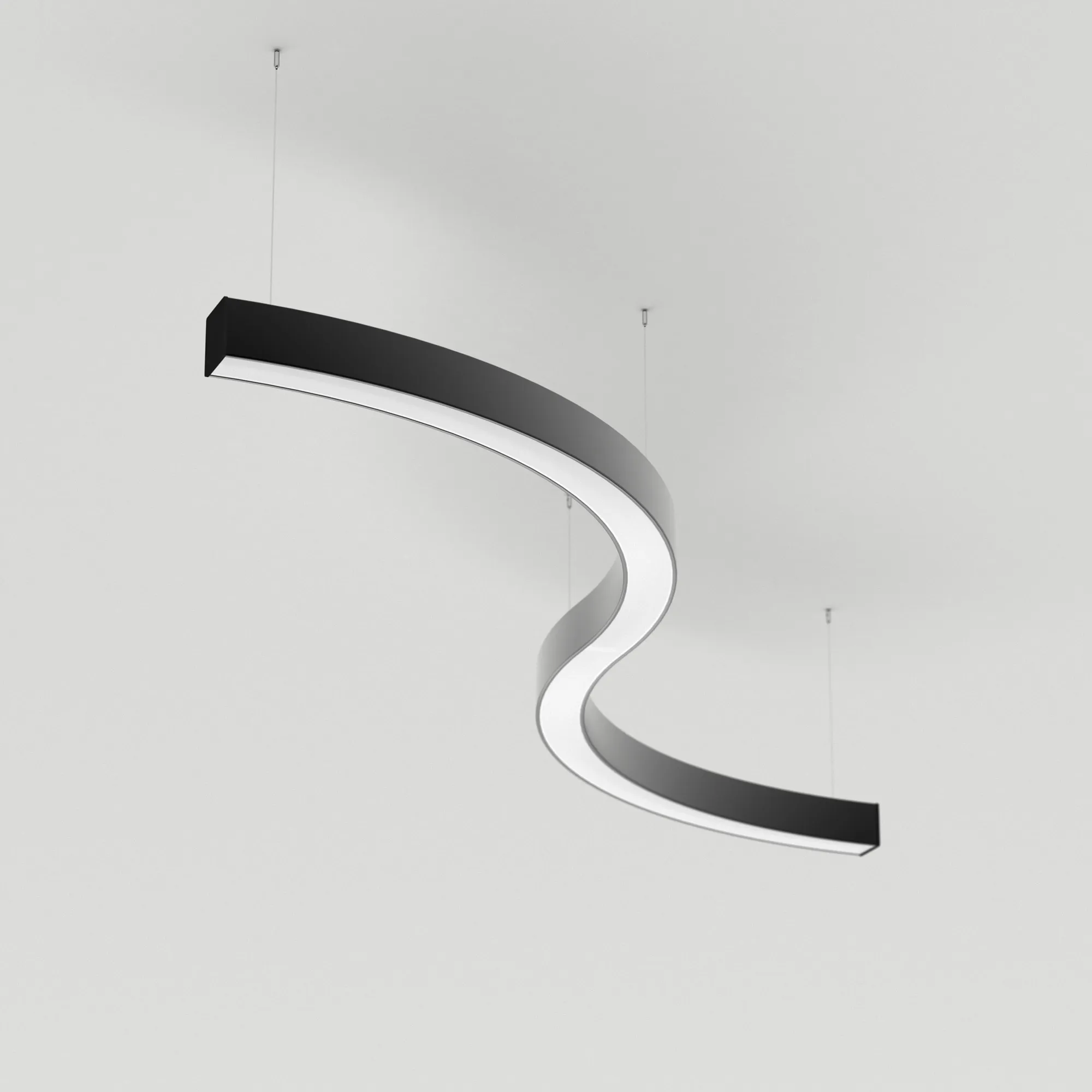 Светильник S-образный из профиля SL-ARC-3535-D800-A90 BLACK, свечение вниз, цвет Тёплый 3000 K.