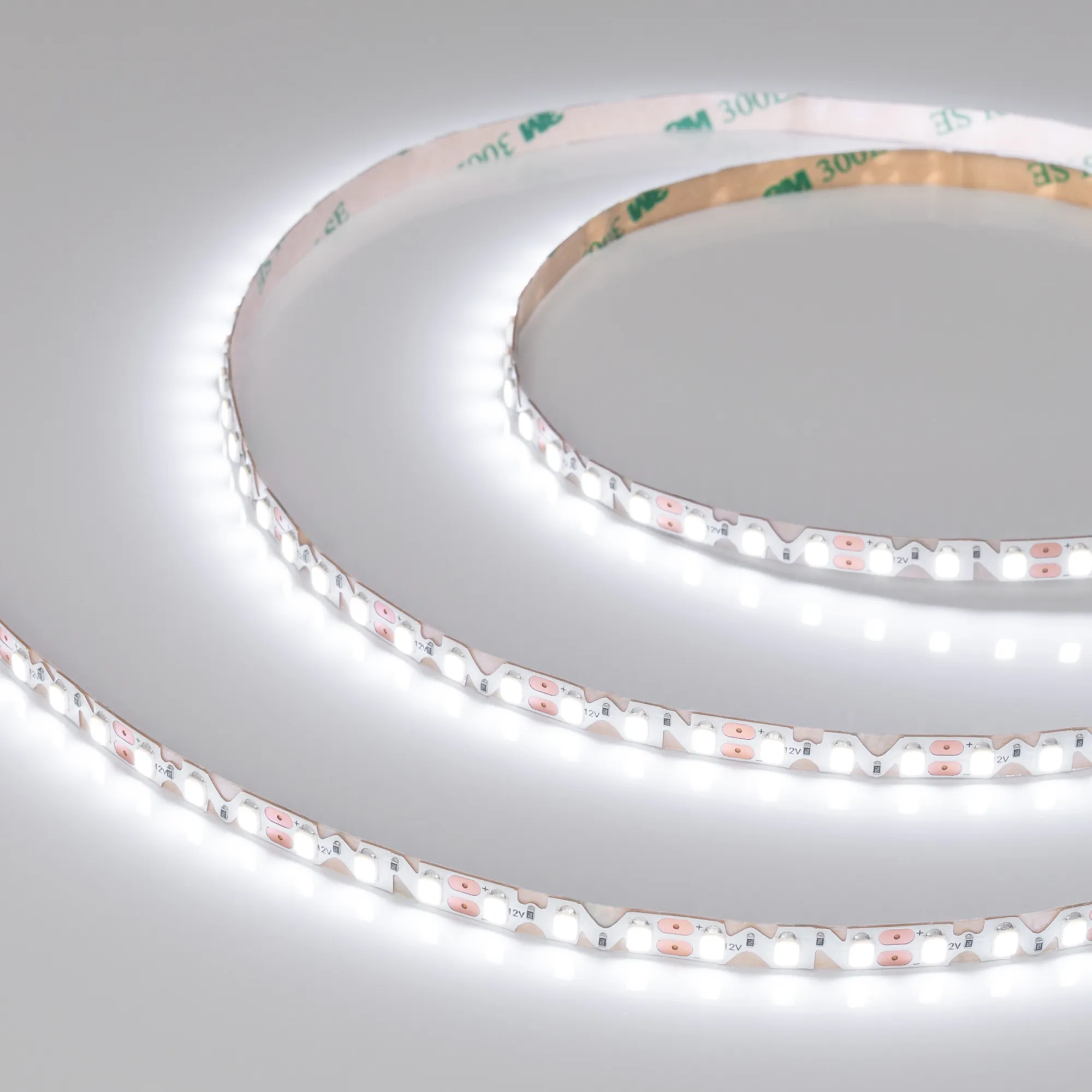 Гибкая светодиодная лента RZ серии A120 с фигурной платой в форме волны, легко изгибается на плоскости. Светодиоды SMD 2835, 120 шт/м, белая плата шириной 6 мм, скотч 3М. Цвет БЕЛЫЙ 6000K, индекс цветопередачи CRI>90, угол 120°. Питание 12 В, мощность 12 Вт/м (60Вт на 5 м). Размеры 5000х6х1.5 мм. Мин. отрезок 25 мм, 3 светодиода. Цена за 1 м.