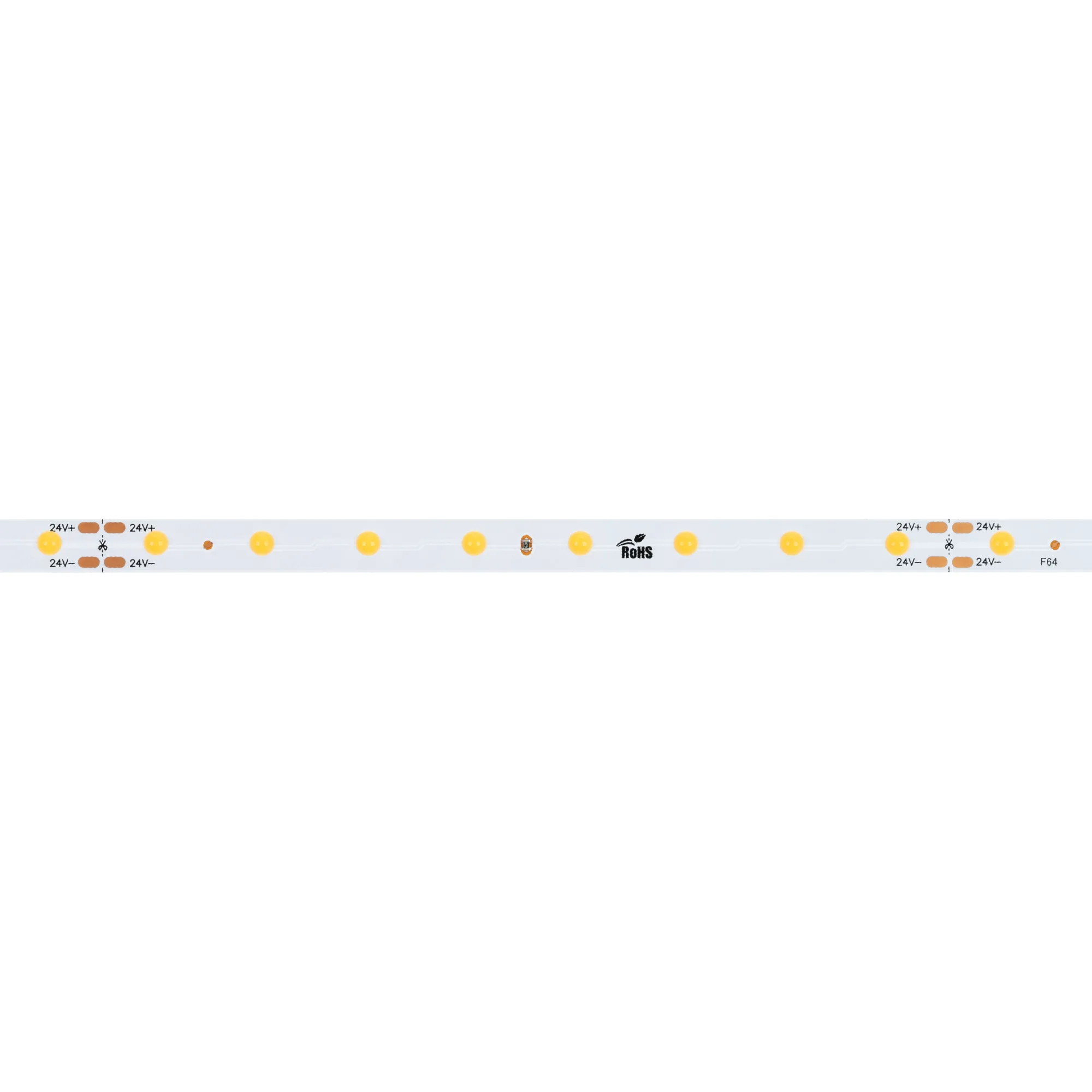 Лента COB с видимой световой точкой. Светодиод Point Light, 64 шт/м (320 шт на 5 м), белая плата, ширина 8 мм, скотч 3M. Цвет ТЕПЛЫЙ 3000 K, цветопередача CRI>80, угол 145°. Питание 24 В, мощность 4.8 Вт/м (24 Вт на 5 м). Размеры 5000x8x1.2 мм. Мин. отрезок 125 мм, 8 светодиодов. Цена за 1 м.