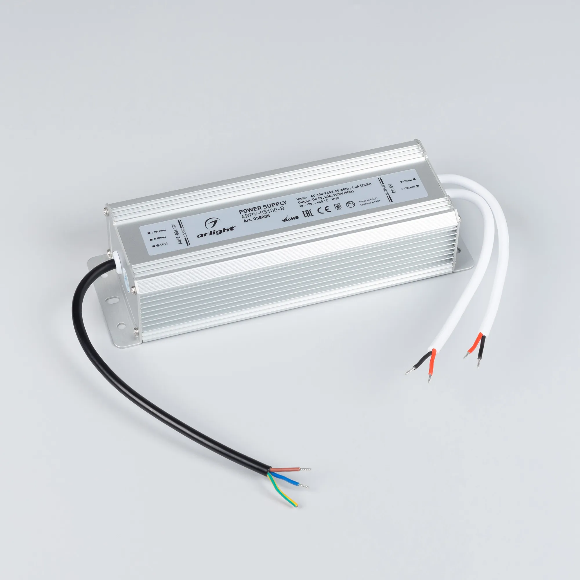 Источник напряжения с гальванической развязкой для светодиодных изделий. Входное напряжение 100-240 VAC. Выходные параметры: 5 В, 20 А, 100 Вт. Герметичный алюминиевый корпус IP 67. Рабочая температура -35…+60C⁰. Габаритные размеры длина 210 мм, ширина 71 мм, высота 46 мм. Гарантийный срок 3 года.