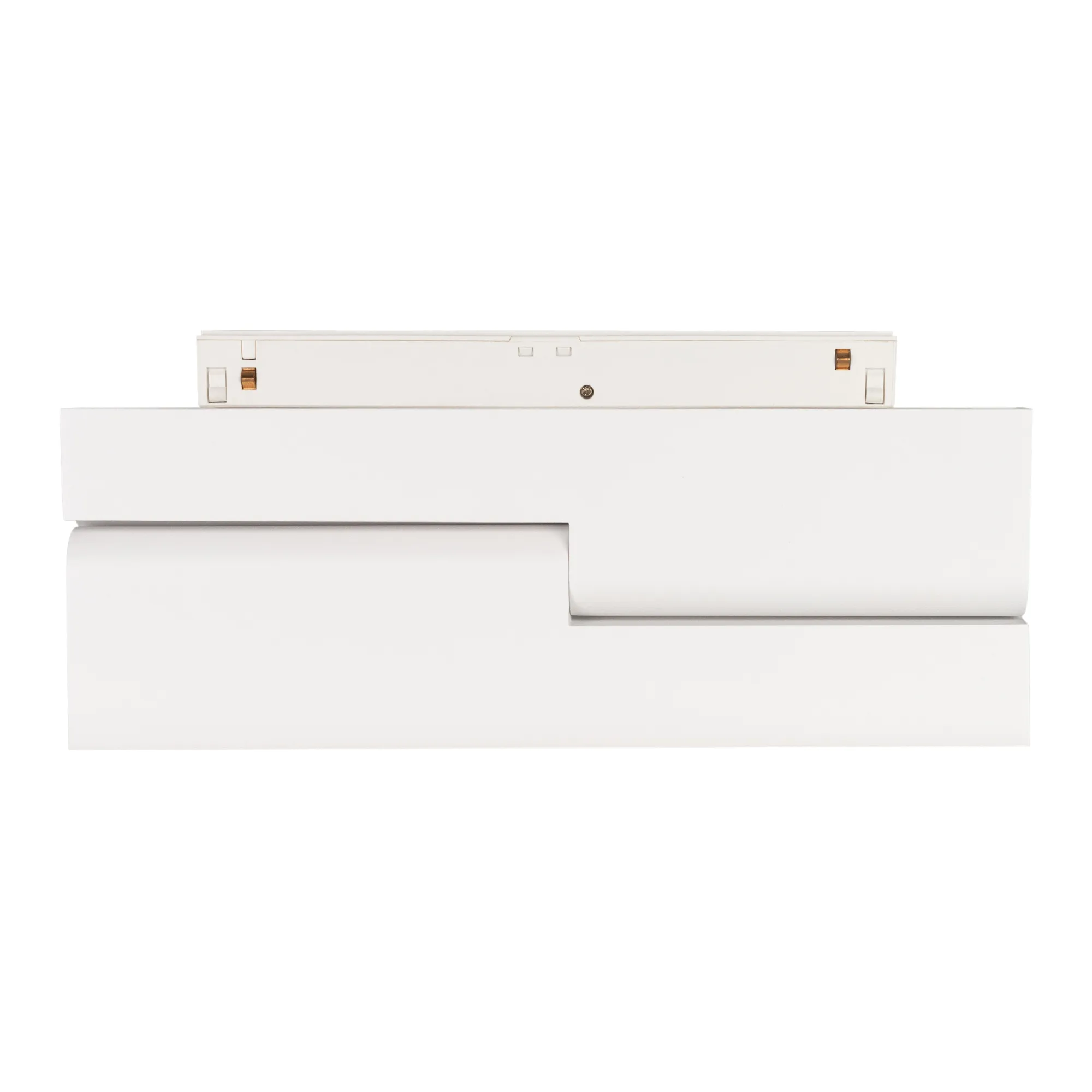 Светильник для магнитных треков MAG-ORIENT шириной 26 мм. Мощность 12 Вт, св. поток 520 лм, 43 лм/Вт, теплый 3000 K, CRI>90, угол 30°, напряжение питания 48 В. Белый прямоугольный корпус из металл, экран поликарбонат, степень защиты IP20. Размер: длина 231 мм, ширина 23 мм, высота 99 мм. Монтаж на трек MAG-ORIENT. Пульсация <1%.