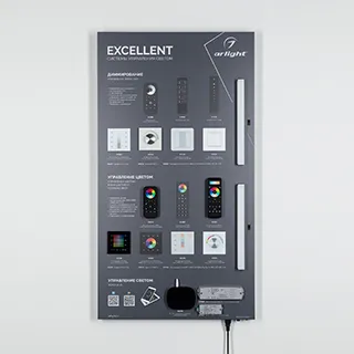 Наши специалисты знают все о продукции Arlight и с радостью помогут Вам выбрать комплектующие к товару "Стенд Системы Управления Excellent Arlight 1100x600mm (DB 3мм, пленка, лого) (Arlight, -)", или другие товары из раздела "Управление светом".