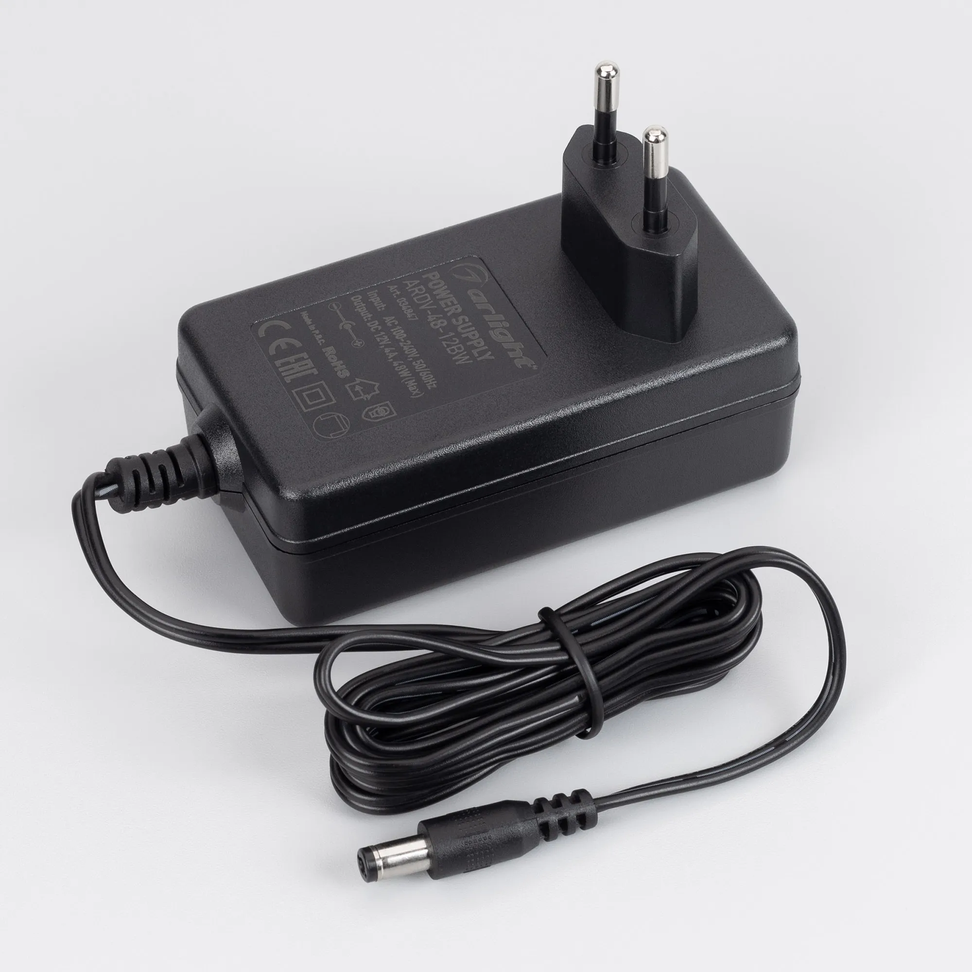 Сетевой адаптер для светодиодных лент 12 В. Мощность 48 Вт. Входное напряжение: 100-240VAC, Выходные параметры: 12VDC 4A, длина кабеля 1.5 м, коннектор 5.5x2.1x10мм. Размер 94x52x33 мм (размер без вилки). Гарантия 3 года.