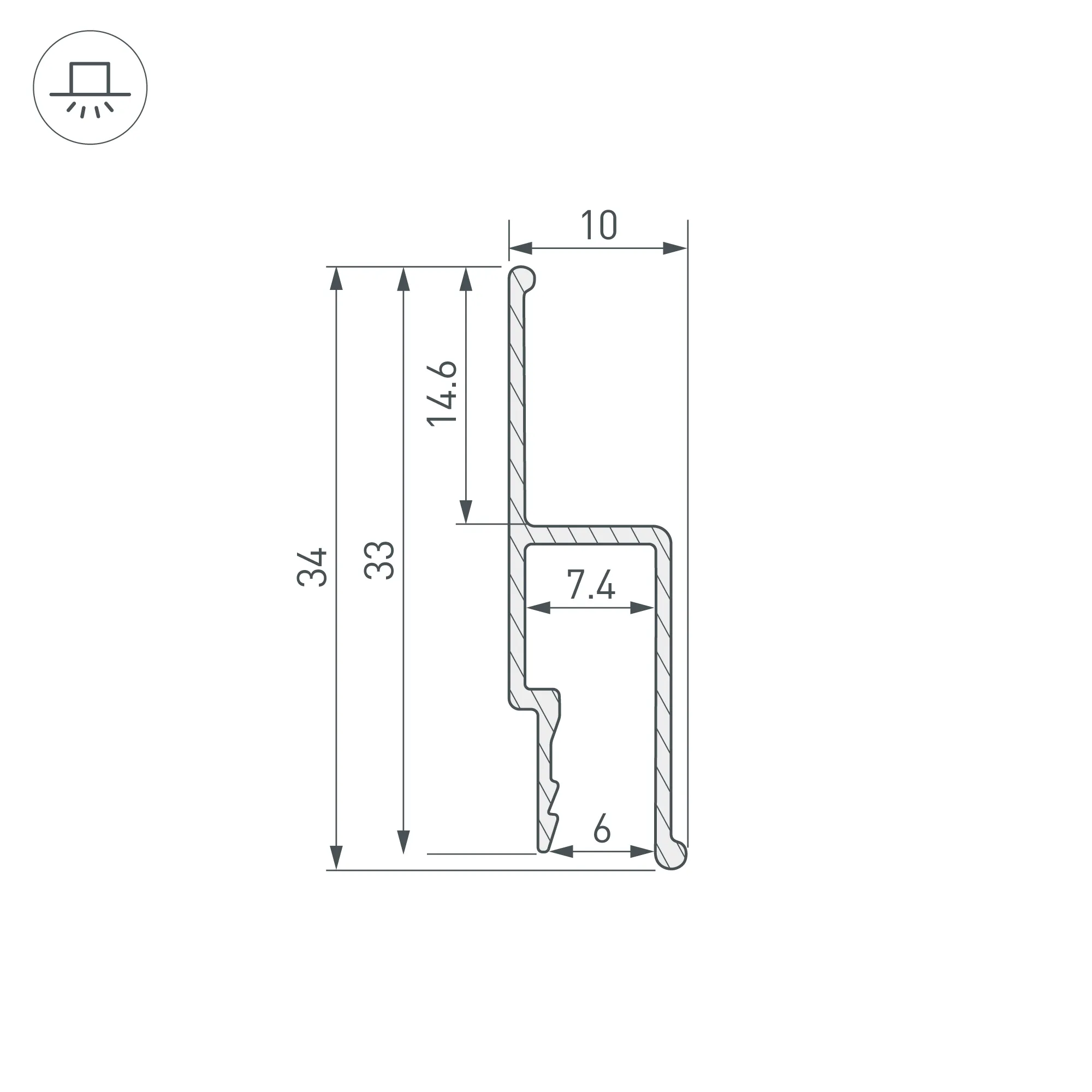 Алюминиевый профиль для установки натяжных потолков, стеновой с перфорацией. Гарпунная система монтажа. Габаритные размеры (L×W×H): 2500x10x34мм. Цена за 1 метр.