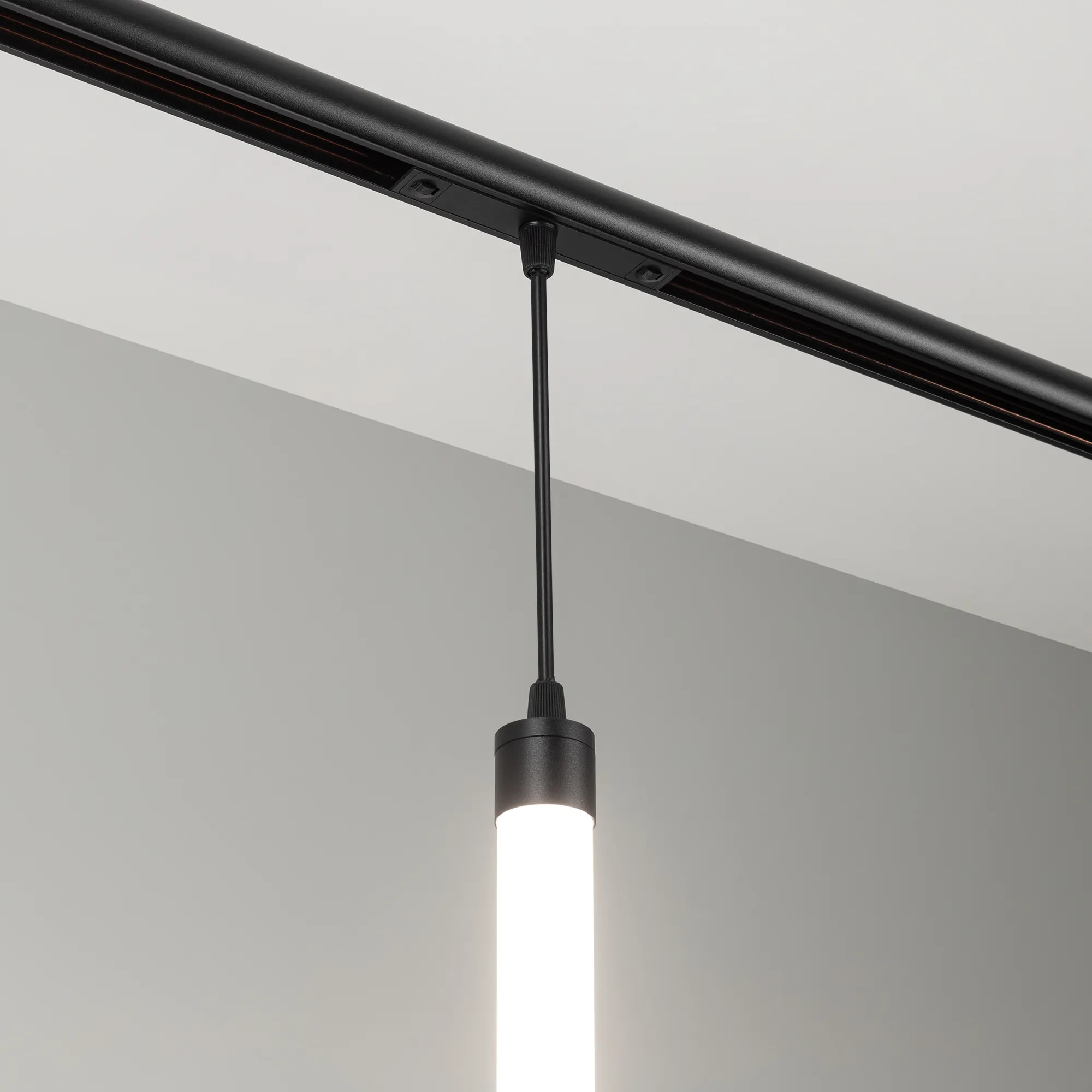Светильник подвесной для магнитных треков серии ORIENT. Мощность 7 Вт, св. поток 450 лм, 67 лм/Вт, дневной 4000 K, CRI>90, угол 360°, напряжение питания 48 В. Матовый белый фигурный рассеиватель из ПВХ. Размер: диаметр 30 мм, длина 530 мм. Длина подвеса 195мм. Монтаж на магнитный трек ORIENT.