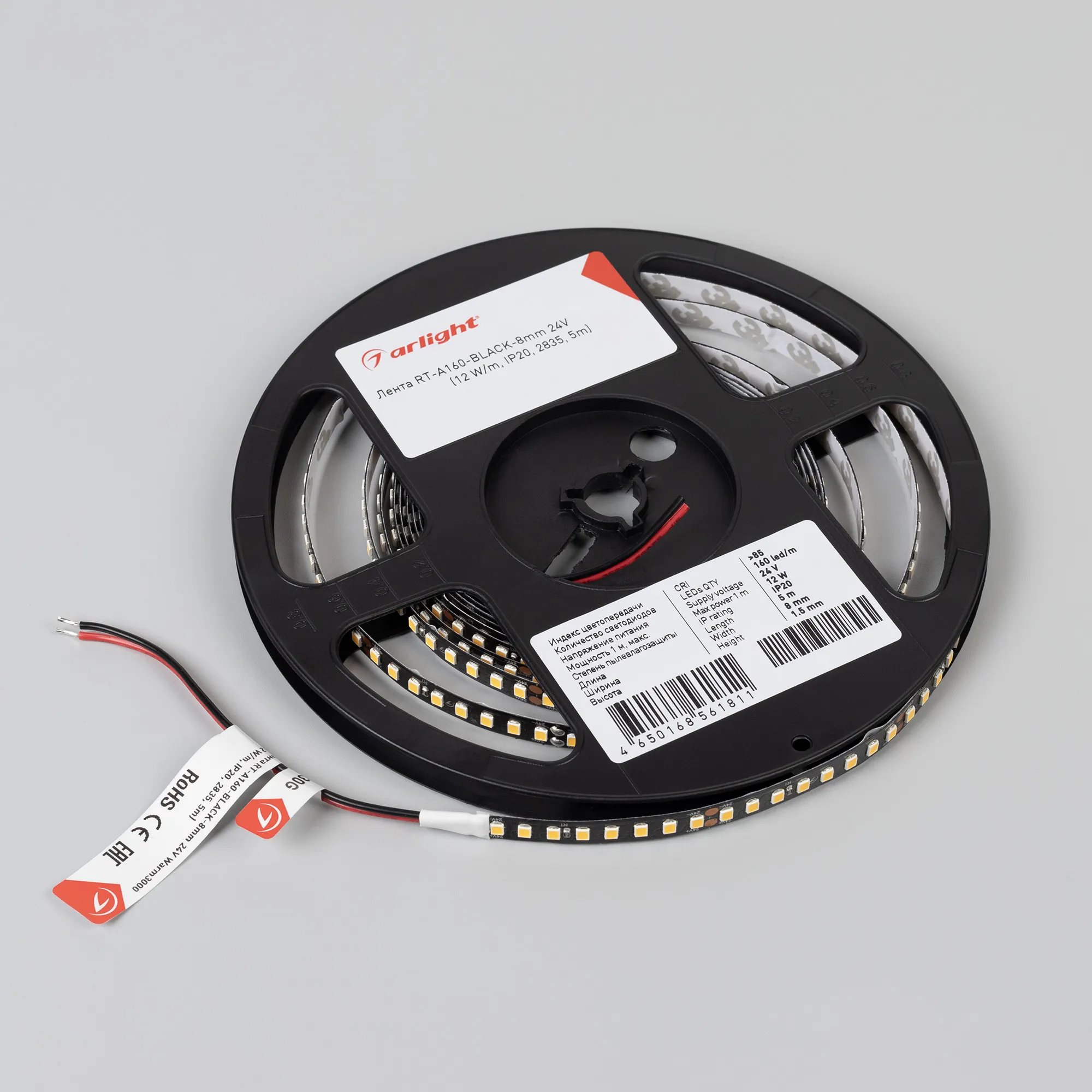 В магазине Мельковский Свет Вы можете купить "Лента светодиодная RT-A160-BLACK-8mm 24V Warm3000 (12 W/m, IP20, 2835, 5m) (Arlight, высок.эфф.150 лм/Вт)"