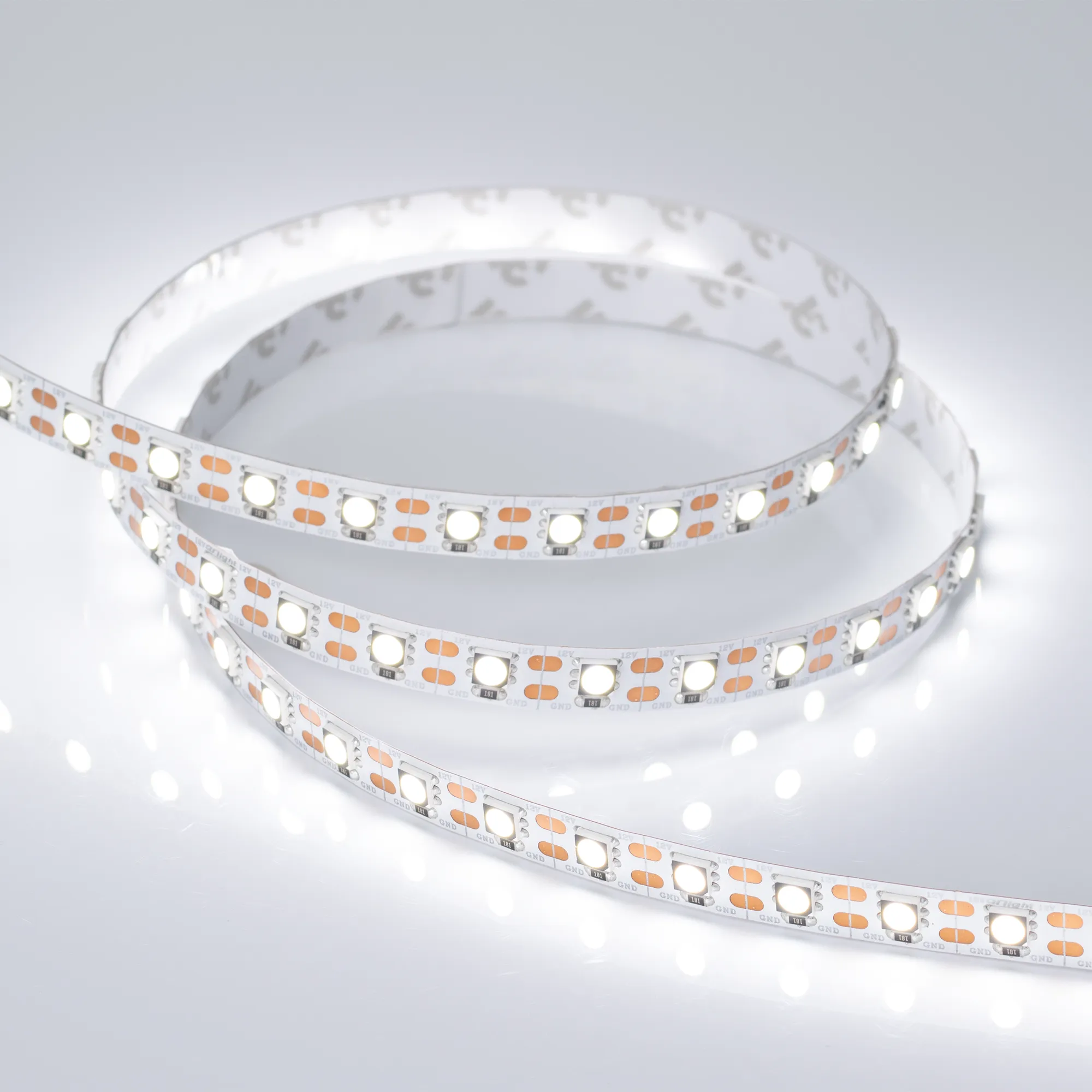 Поставка под заказ от 500 м. CRI98, гибкая лента, разрезается по одному светодиоду, smd 5060, 72шт/м (360шт на 5м), белая плата 10мм, скотч 3М. Цвет БЕЛЫЙ ДНЕВНОЙ 4800-5200K. Питание 12V, мощность 16.8 Вт/м (84 Вт на 5м), угол 120°, очень высокая цветопередача CRI 95..98. Размеры 5000х10x2.2мм. Мин.отрезок 13.9 мм, 1 светодиод. Цена за 1м.