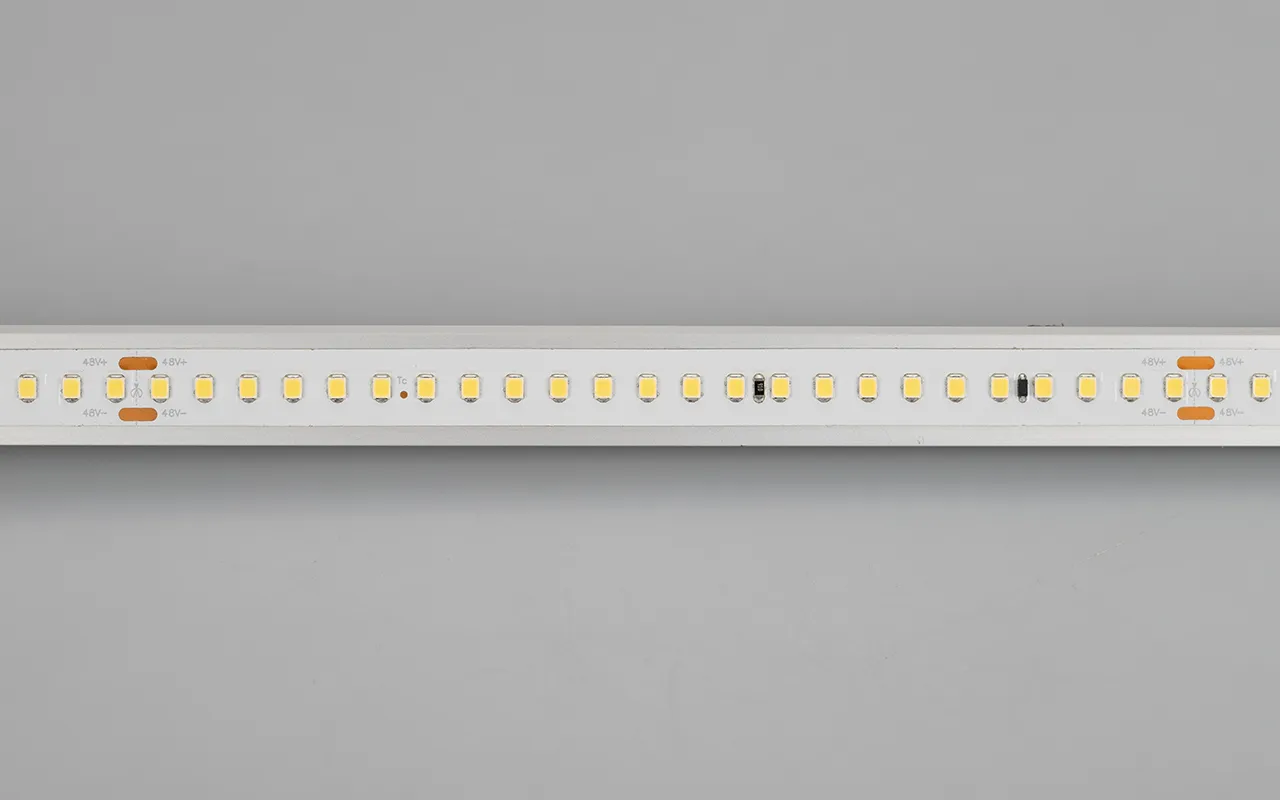 Поставка под заказ от 1000 м. Стабилизированная лента LUX, подключение 50м в одну линию, светодиоды smd 2835, 144шт/м (7200шт на 50м), белая плата 12мм, скотч 3М. Цвет ХОЛОДНЫЙ 7700-9600K. Питание 48V, мощность 5.8 Вт/м (290 Вт на 50м), угол 120°, цветопередача CRI>85. Размеры 50000х12x1.6мм. Мин.отрезок 166.67мм, 24 шт светодиодов. Пакет 50м. Цена за 1м.