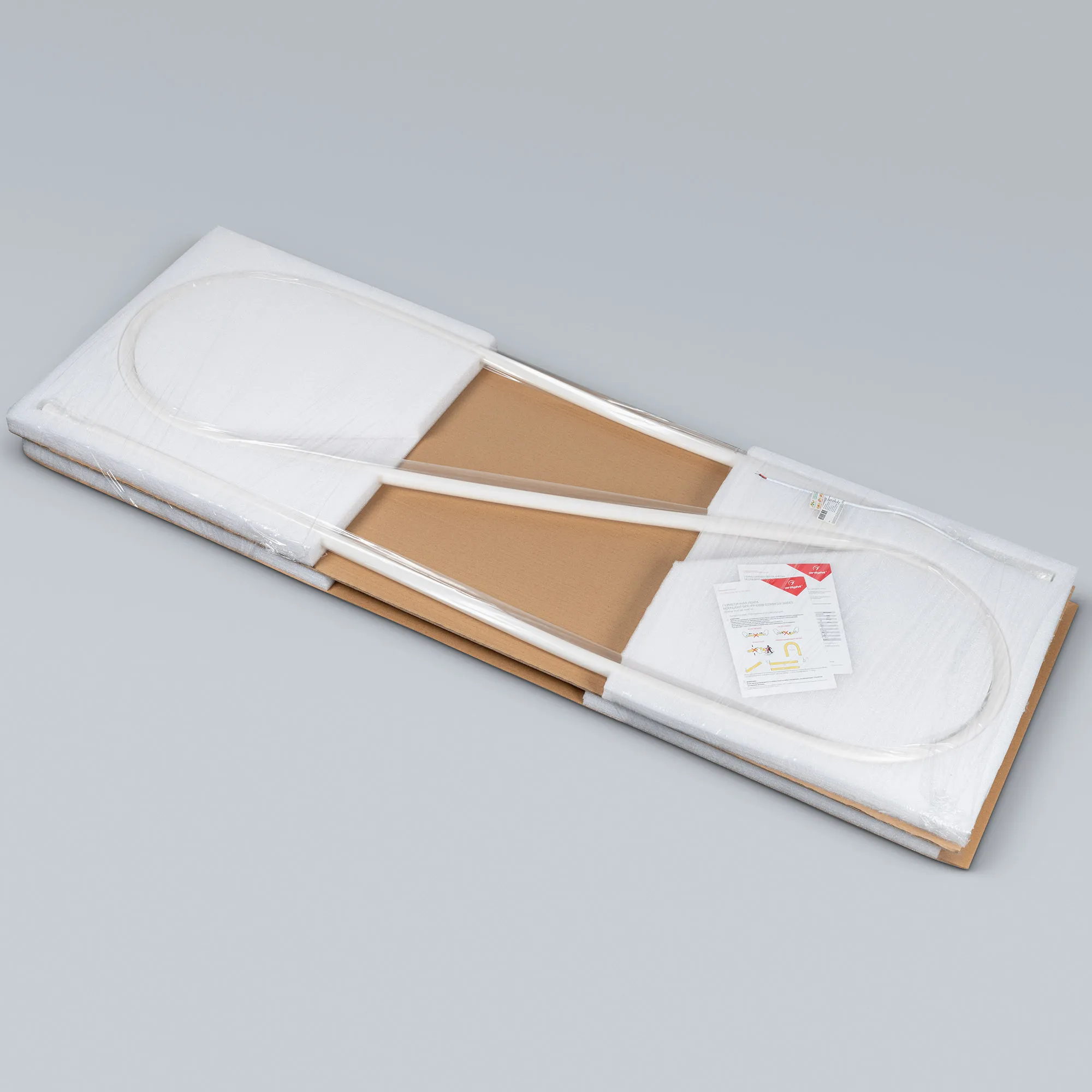 Гибкая герметичная лента (неон серии MOONLIGHT), сечение 25×25 мм. Светодиоды CSP 1088 шт/м. Цвет свечения ТЕПЛЫЙ БЕЛЫЙ (2700 К), индекс цветопередачи CRI>90, световой поток 1100 лм/м, угол излучения 360°. Мощность 20 Вт/м, питание 24 В. Класс пылевлагозащиты IP65. Размеры 5000×25×25 мм. Резка не предусмотрена. Форма изгиба ленты фиксируется. Изгиб согласно метки на корпусе, минимальный радиус изгиба 150 мм. Кабель питания длиной 500 мм, вывод с одной стороны вдоль линии сечения неона. Катушка 5 м. Цена за 1 м. В виду особенности конструкции ленты, упаковка имеет размеры 1600x980x260 мм. Гарантия 3 года.