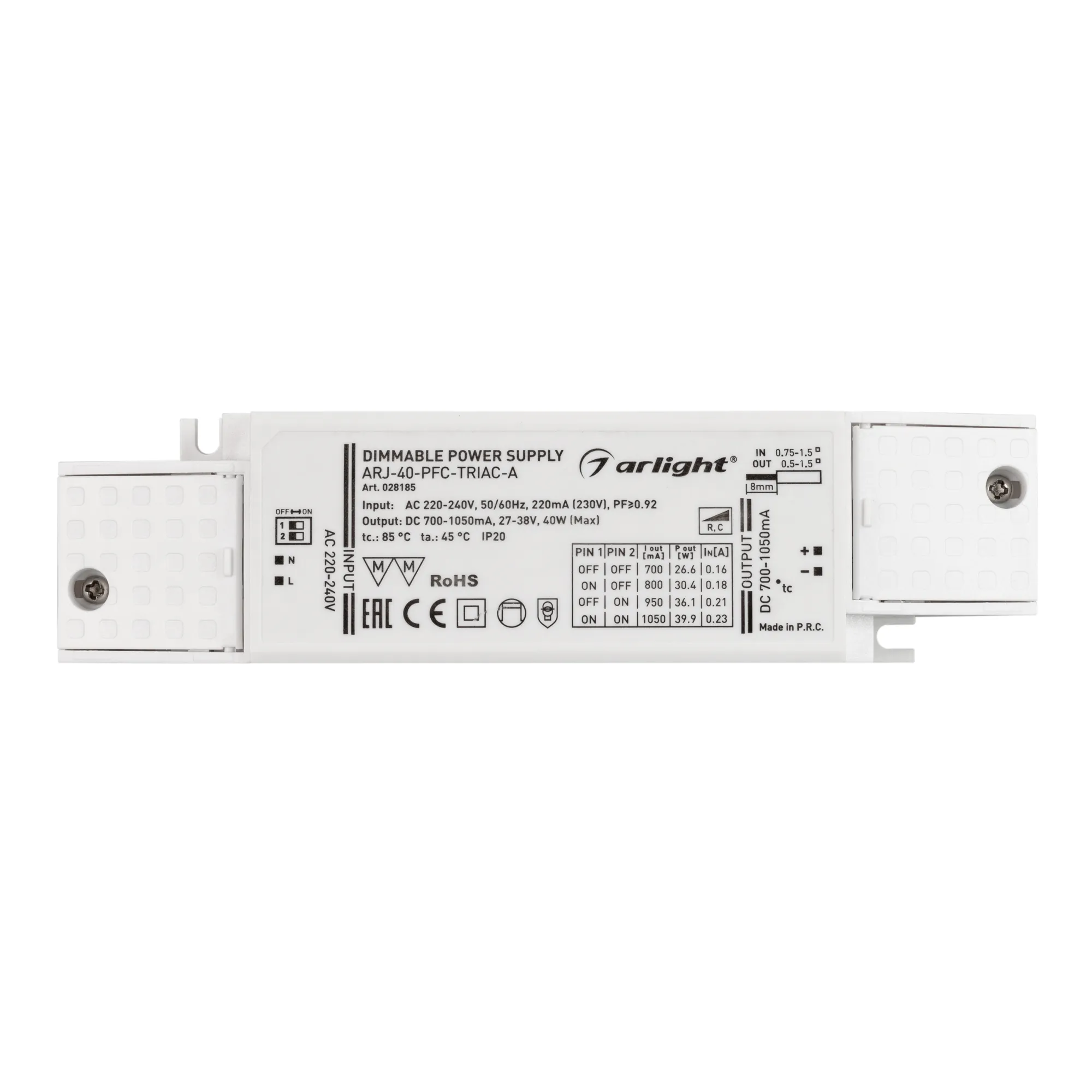 Блок питания ARJ-40-PFC-TRIAC-A (40W, 700-1050mA) (Arlight, IP20 Пластик, 5 лет)