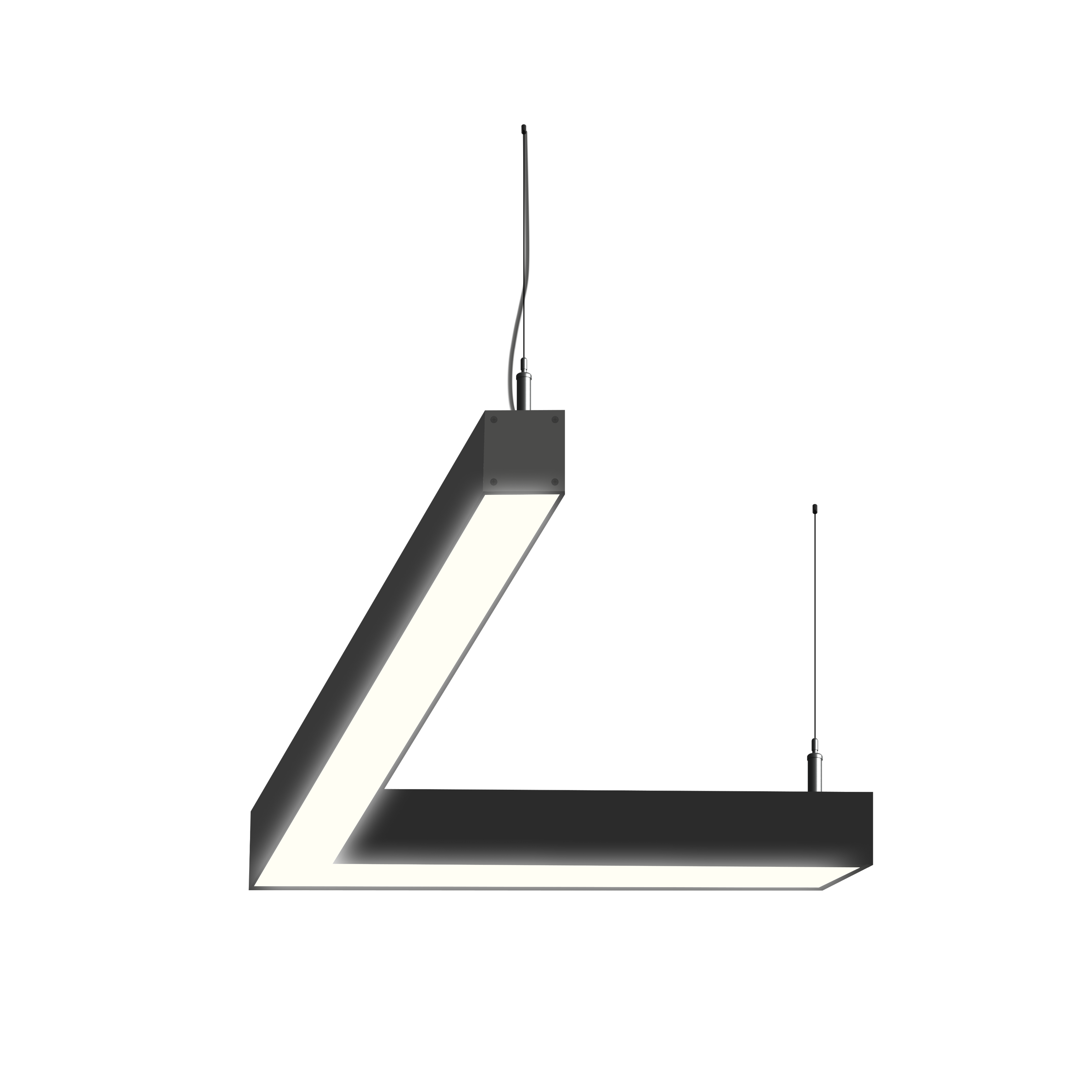 Светодиодный фигурный светильник MS-CORN L-образный 45гр. размер профиля 50х50мм длиной 1000х1000мм мощностью 80W. Светильник собирается в алюминиевом корпусе с матовым рассеивателем, который дает равномерную засветку по всей площади.