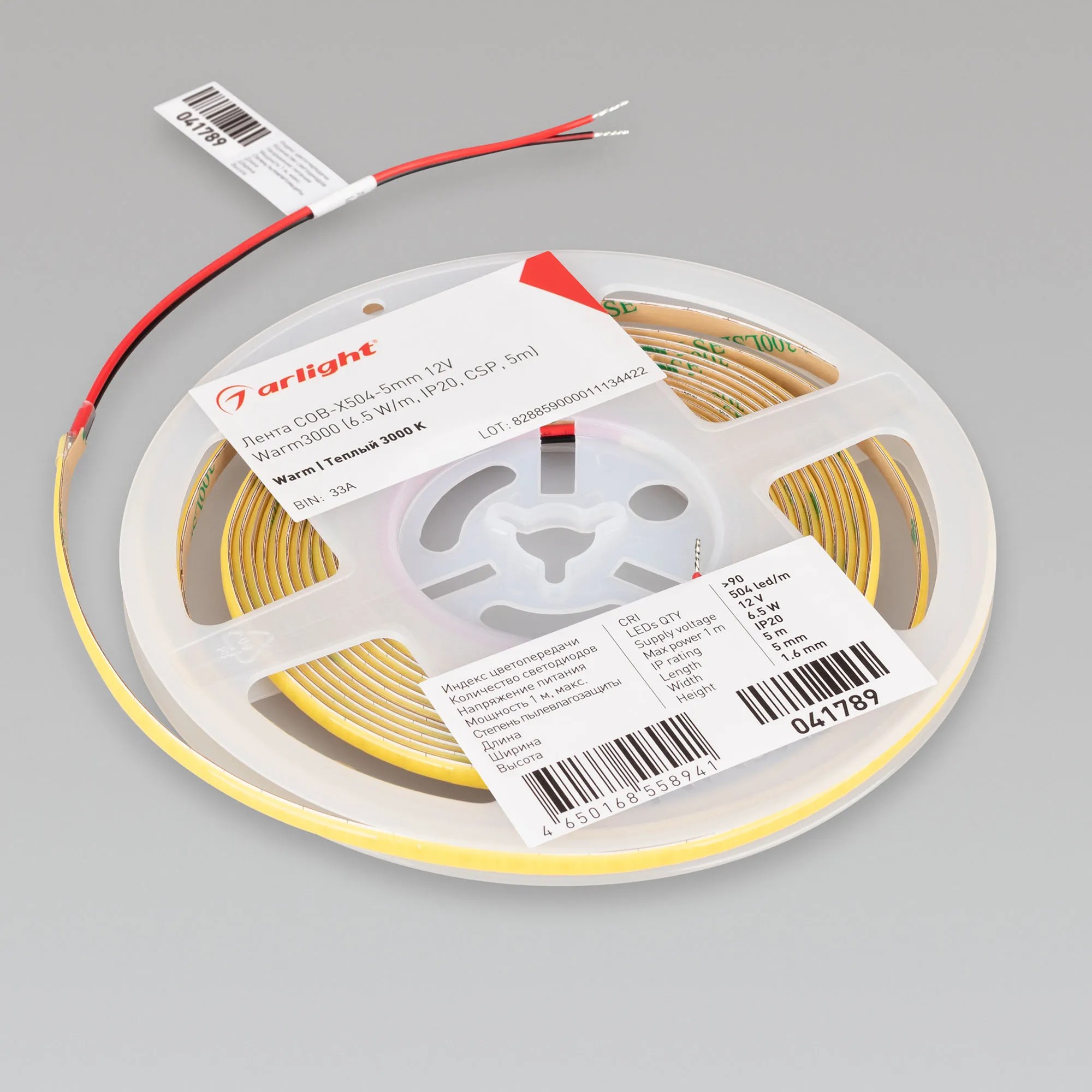 Светодиодная узкая лента сплошного свечения COB серии X504. Светодиоды CSP, 504 шт/м, белая плата шириной 5 мм, скотч 3M. Цвет ТЕПЛЫЙ 3000K, индекс цветопередачи CRI>90, угол 150°. Питание 12 В, мощность 6.5 Вт/м (32.5 Вт на 5 м). Размеры 5000х5х1.6 мм. Мин. отрезок 7.94 мм. Цена за 1 м. Рекомендуется установка на профиль.