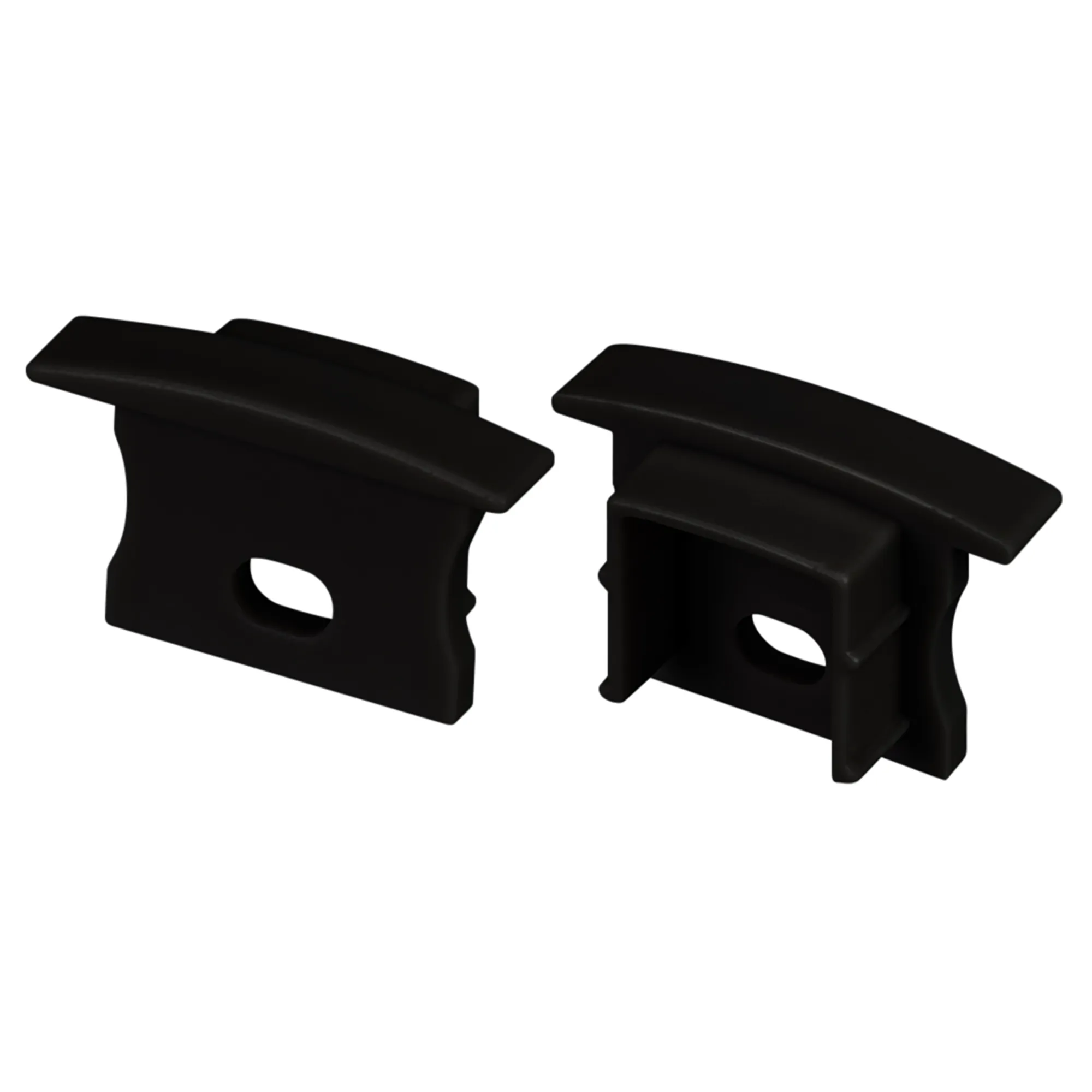 Пара заглушек для профиля LINE-2315-F. Цвет - черный. Материал - пластик. В комплекте 2 заглушки с отверстиями.