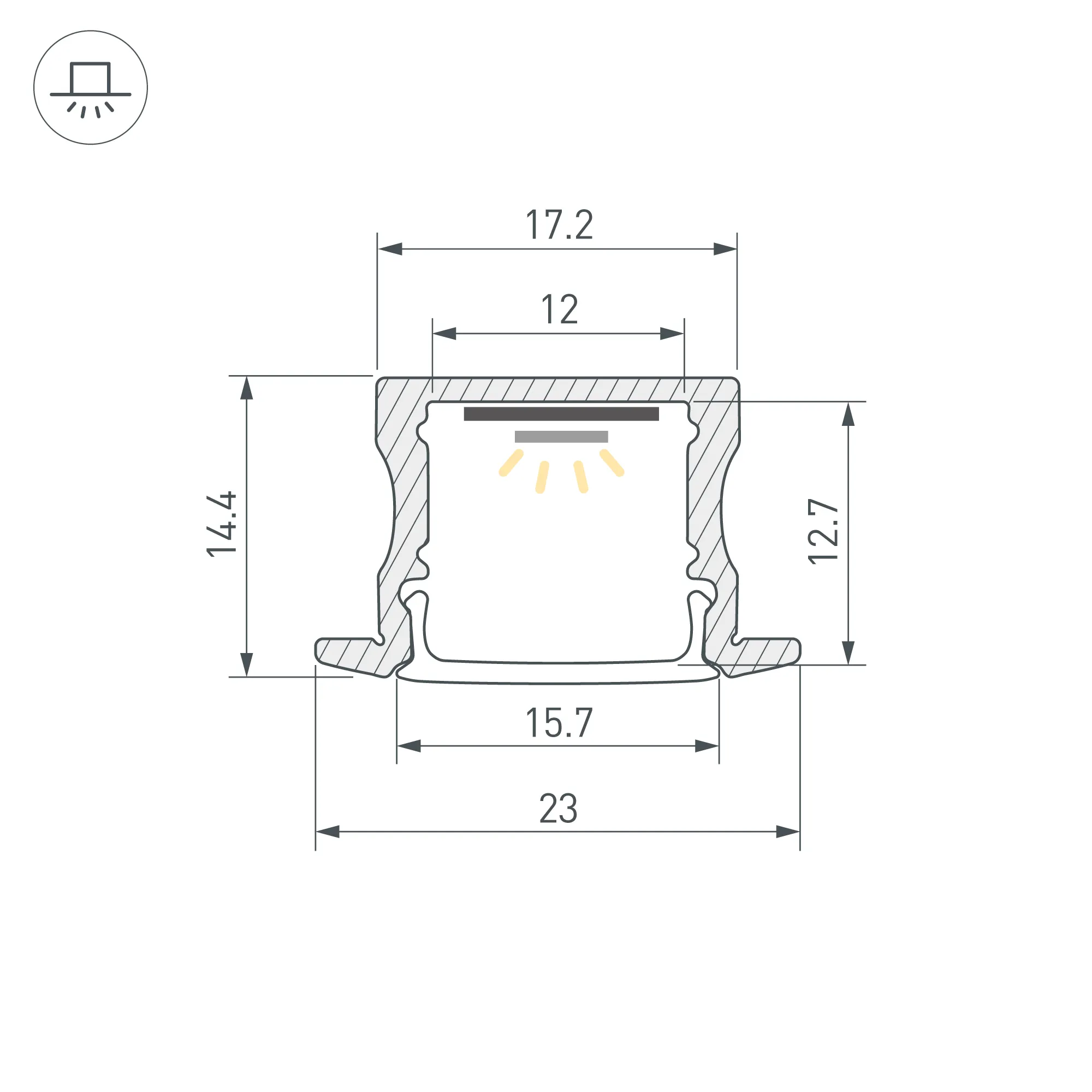 Алюминиевый анодированный встраиваемый профиль для светодиодных лент и линеек. Цвет - черный. Габаритные размеры (L×W×H): 2000x23x14,4 мм. Паз для установки 17 мм. Ширина площадки для ленты 12 мм. Экраны, заглушки и другие аксессуары приобретаются отдельно. Цена за 1 метр.
