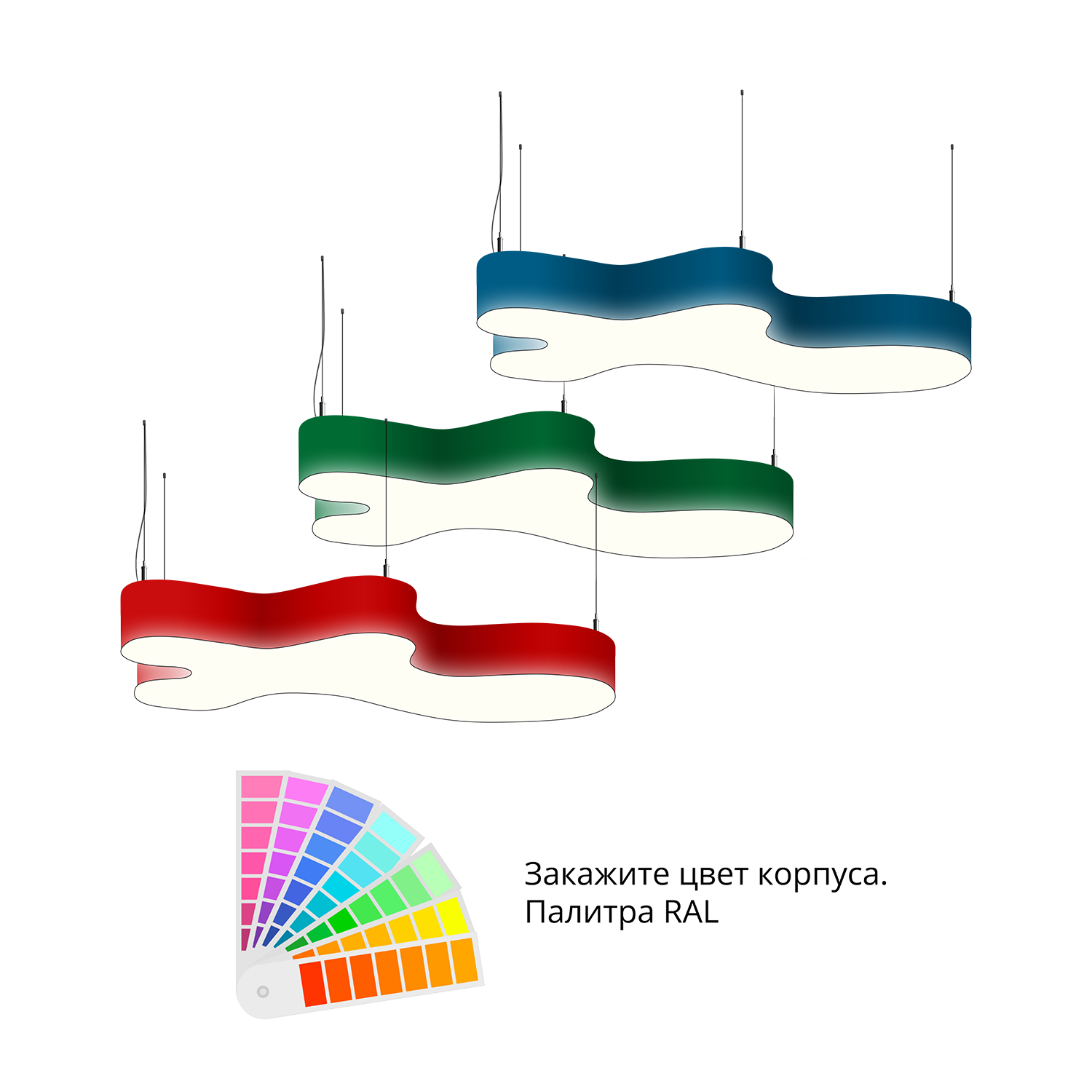 - Светильники доступны в базовых цветах: черный/серый/белый, дополнительно могут быть окрашены в любом цвете палитры RAL (уточняется у менеджера).