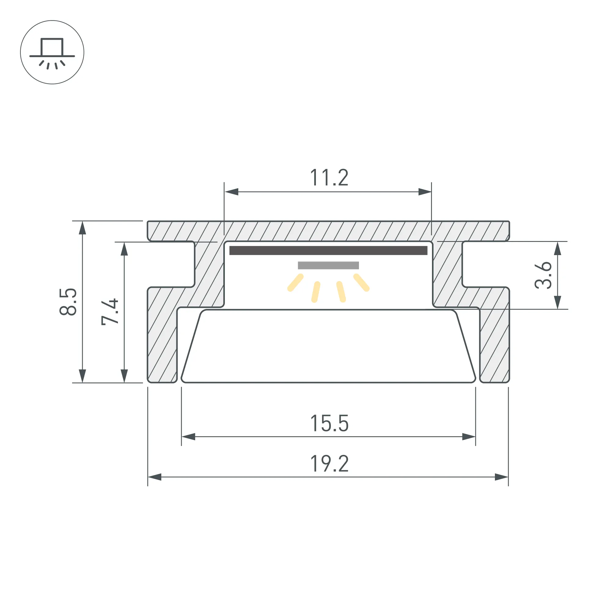 Алюминиевый анодированный профиль, встраиваемый в пол. Высокопрочный алюминий. Герметизация до IP67. Для использования внутри помещений. Габаритные размеры (L×W×H): 3000x19,2x8,5 мм. Ширина площадки для ленты 11,2 мм. Экран (из сверхпрочного поликарбоната, УФ-устойчивый), заглушки и другие аксессуары приобретаются отдельно. Цена за 1 метр.